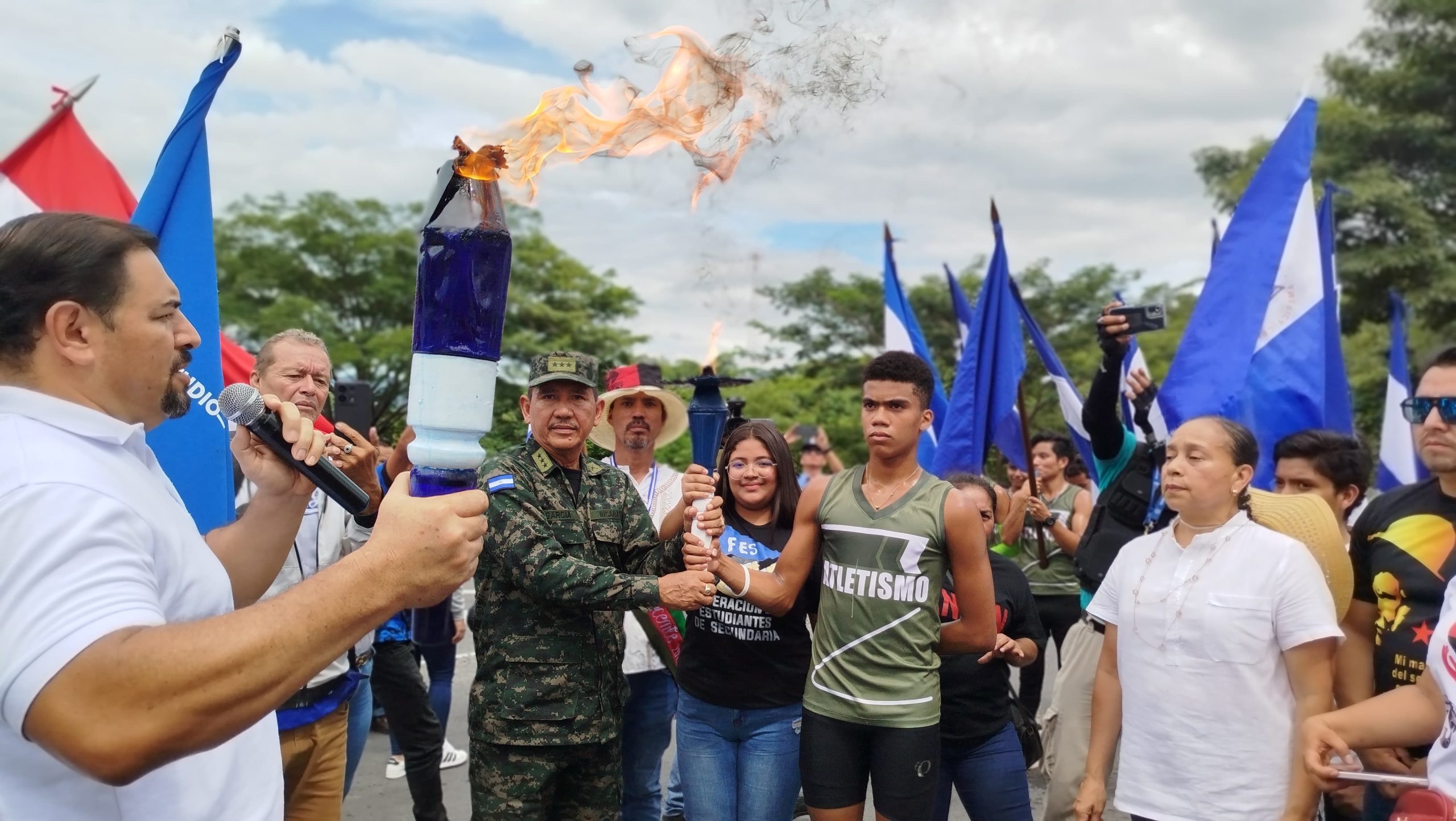 La tea libertaria, portada en manos de estudiantes destacados en excelencia académica, deporte, oficiales del Ejército de Nicaragua, Policía Nacional y Bomberos del MINT, avanzó por los municipios de La Trinidad, San Isidro, Sébaco y Matagalpa, donde ha sido recibida con gran algarabía por la comunidad educativa, que salió a saludar su paso.