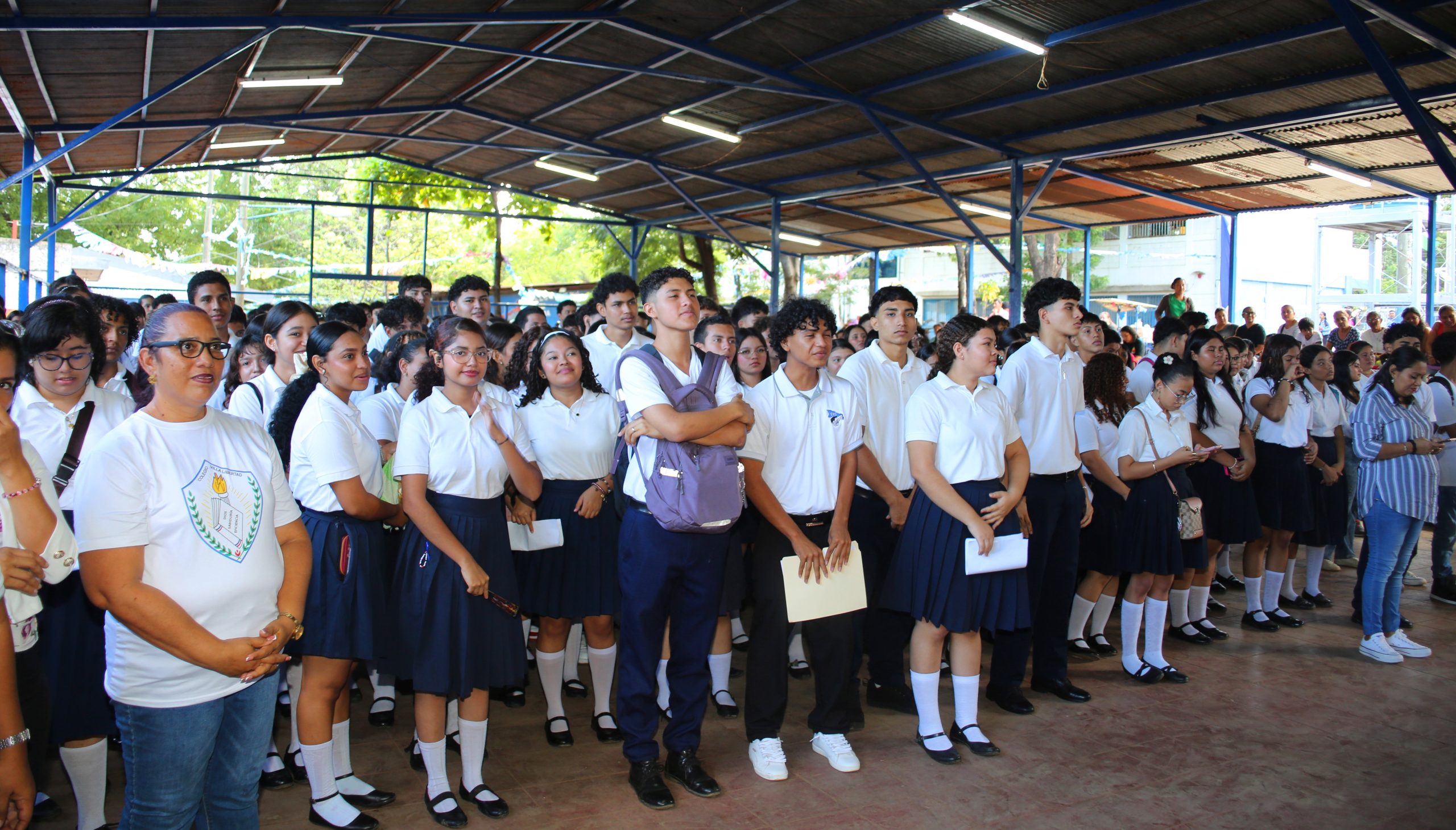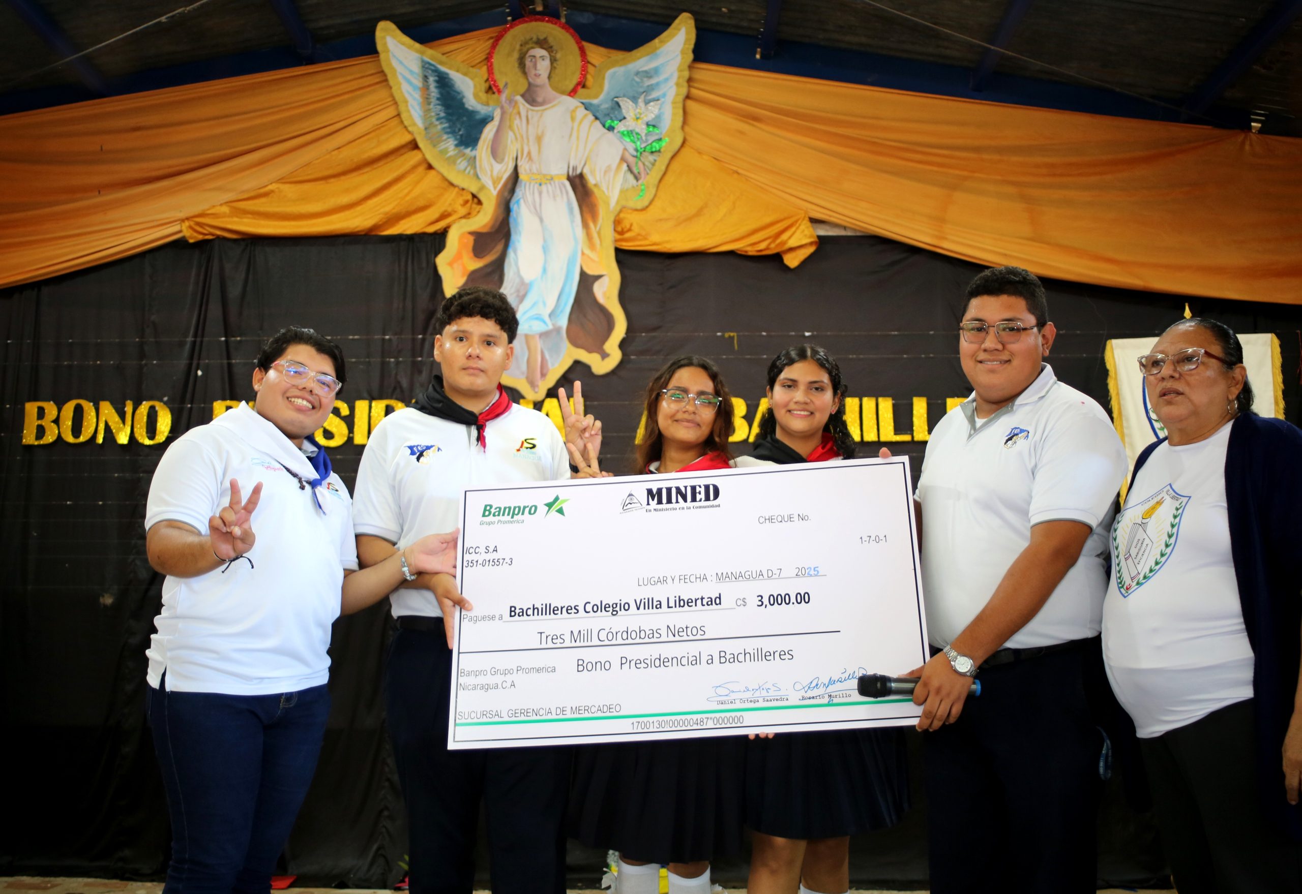 518 jóvenes de los colegios públicos Filemón Rivera y Villa Libertad del distrito VII, recibieron el Bono Presidencial a Bachilleres 2025, en un ambiente de alegría y celebración fue entregado por el Gobierno de Reconciliación y Unidad Nacional, a través de la Federación de Estudiantes de Secundaria (FES), como reconocimiento a su esfuerzo académico y apoyo para celebrar sus promociones.