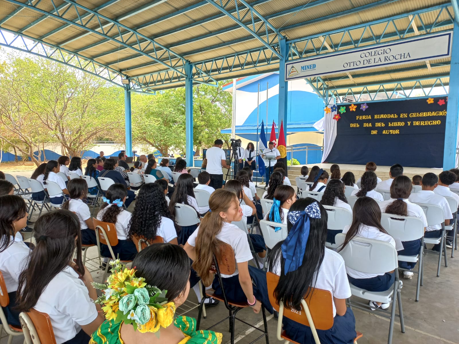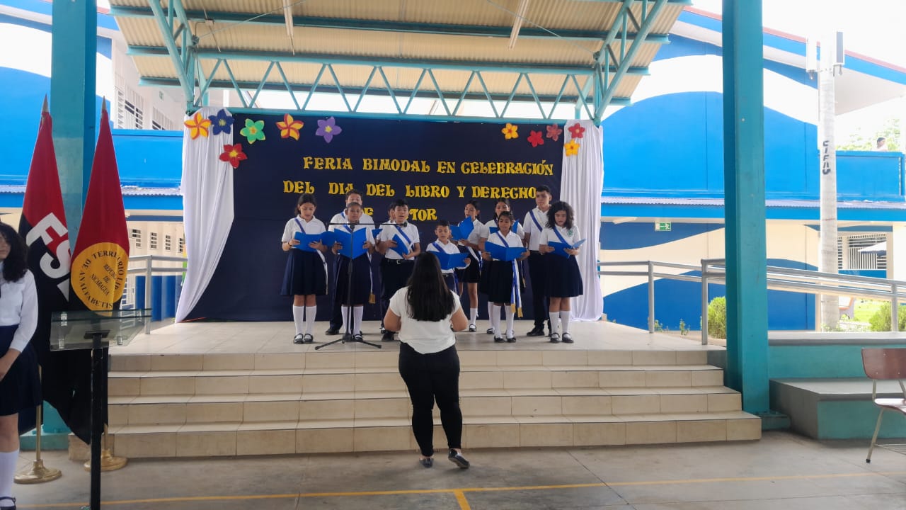 Desde el Colegio Otto de la Rocha, distrito V, en Managua, se realizó acto central del Día Internacional del Libro, con la participación de estudiantes, maestros, bibliotecarios y autoridades educativas.