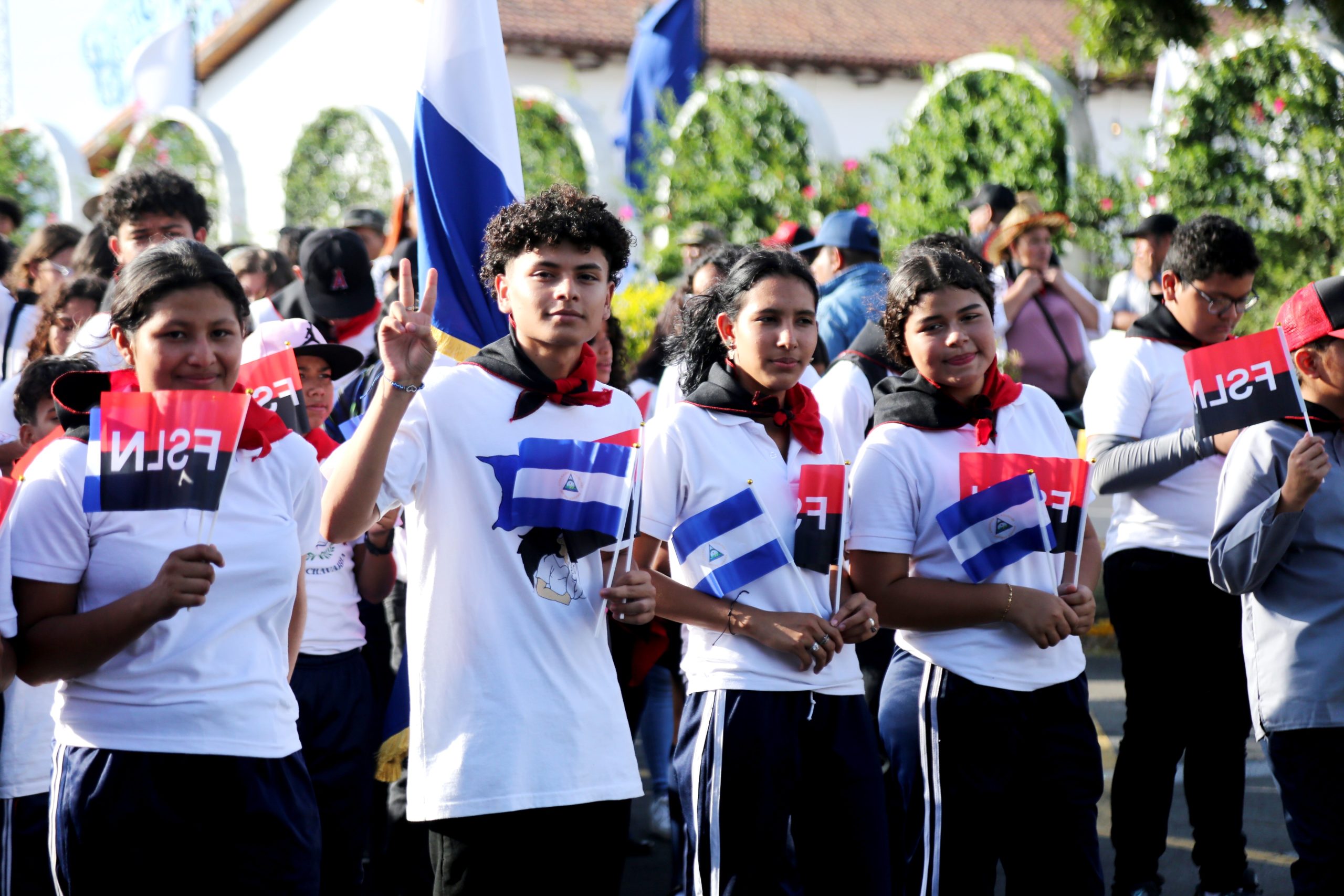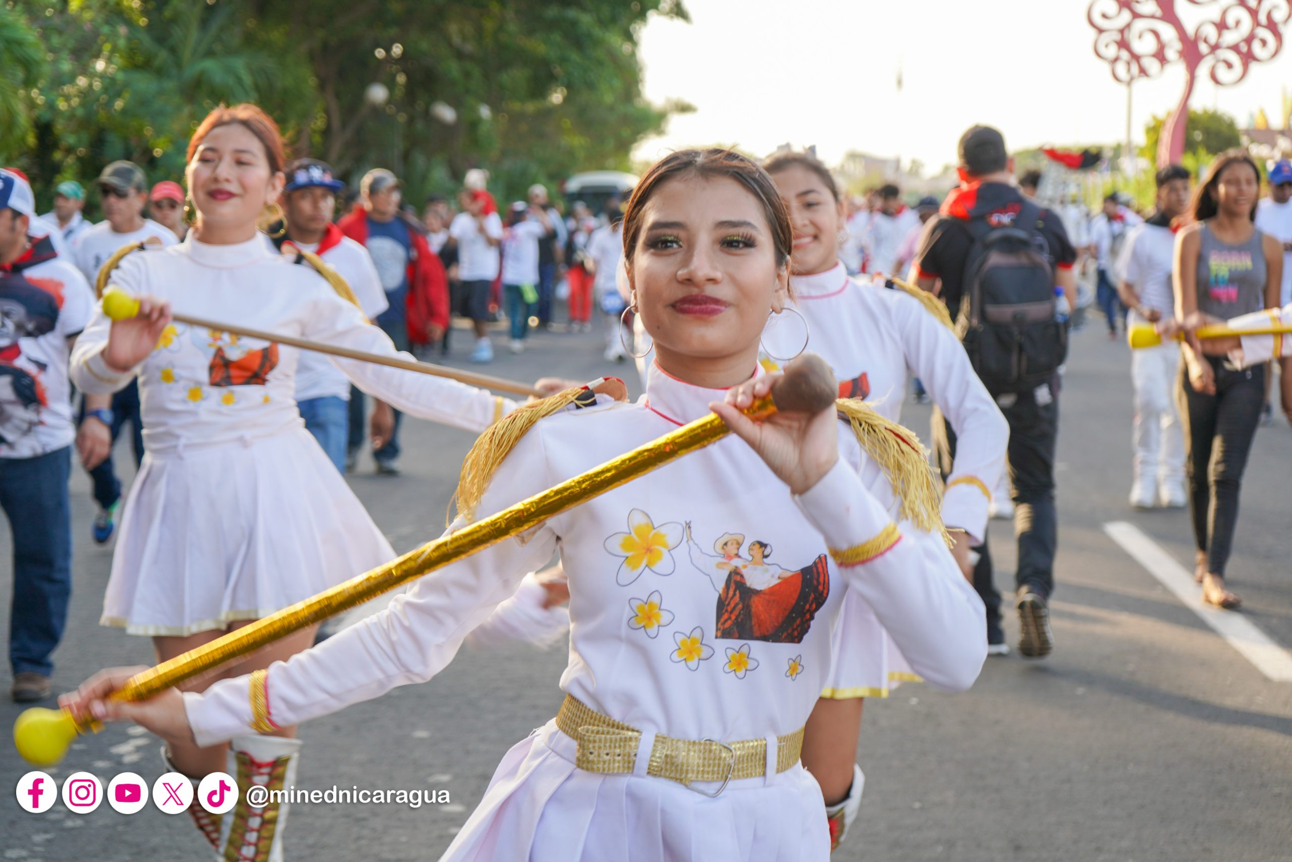 En celebración a la gran epopeya de 1980, cientos de estudiantes, maestros, integrantes de la Juventud Sandinista 19 de Julio y familias, participaron en caminata donde bailaron y corearon consignas en homenaje al 45 Aniversario del Inicio de la Gran Cruzada Nacional de Alfabetización.