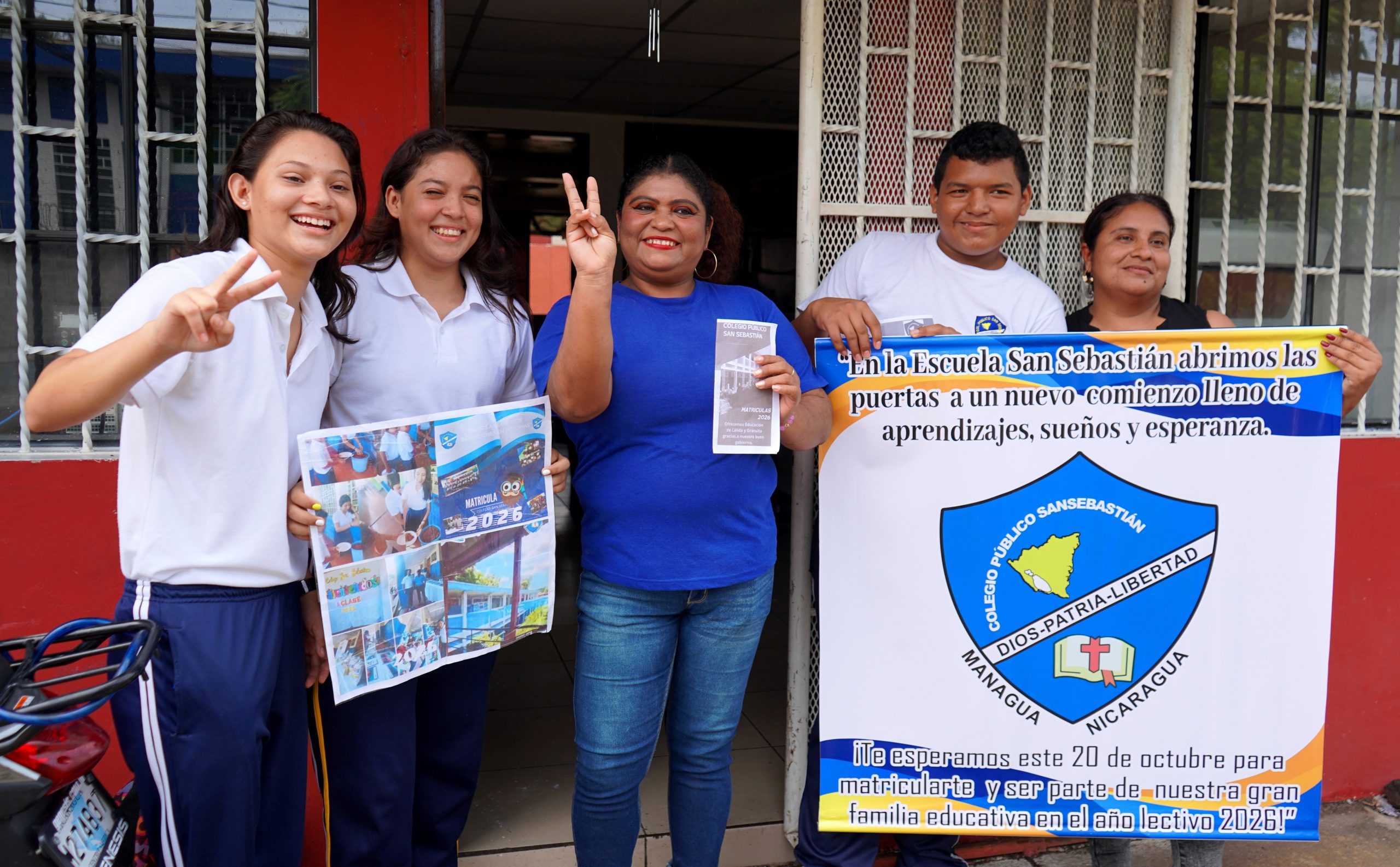 En el Colegio Público San Sebastián, distrito II, en Managua, estudiantes y maestros prepararon un espacio informativo, donde las familias pueden consultar detalles sobre el proceso y documentación correspondiente para las matrículas de: Continuidad educativa, Nuevos ingresos y Traslados.