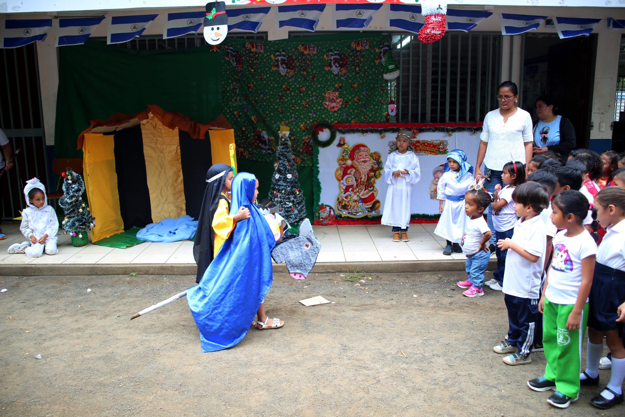 Niñas y niños de Educación Inicial del Colegio Bella Cruz, en Ciudad Sandino, Managua, celebraron la Navidad, tiempo de paz y armonía, con una hermosa pastorela, dramatizando el nacimiento de Jesús.