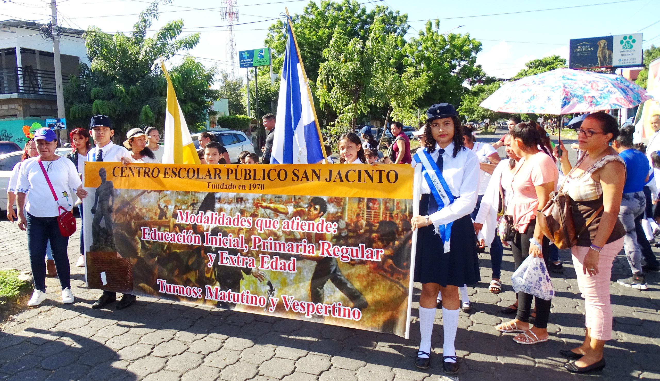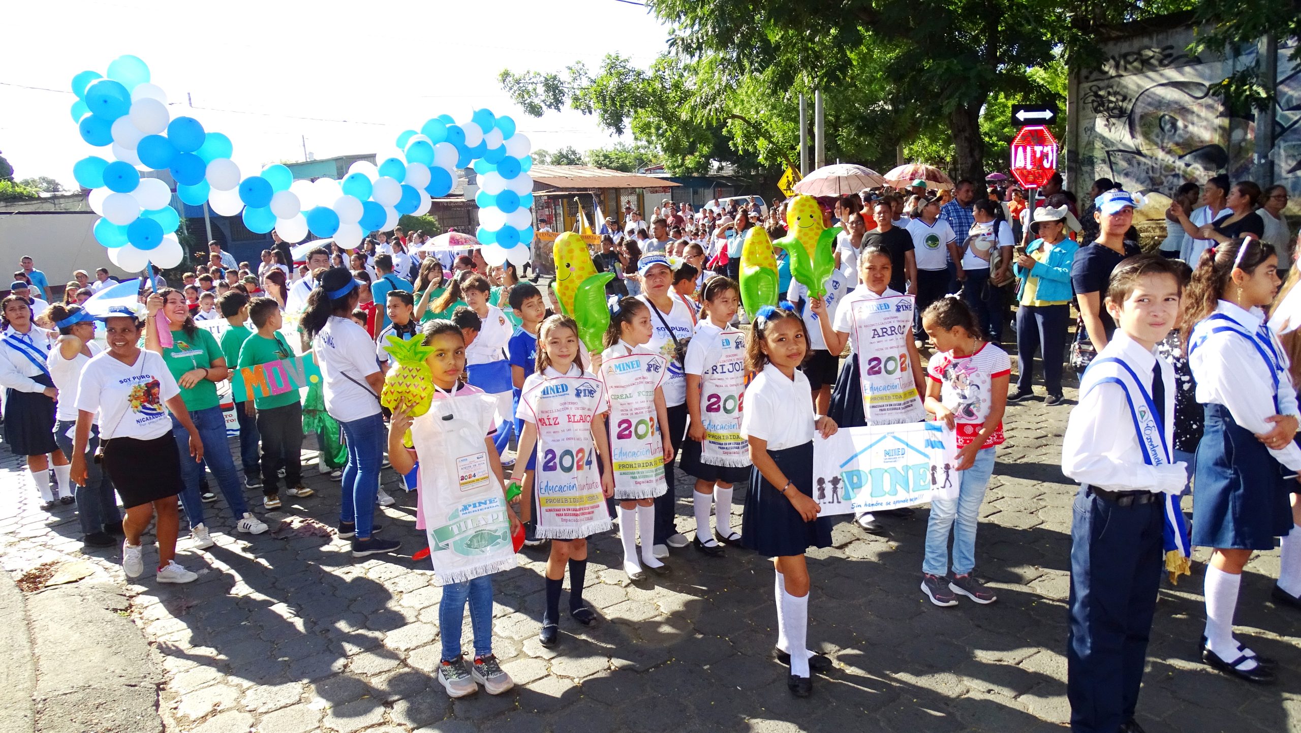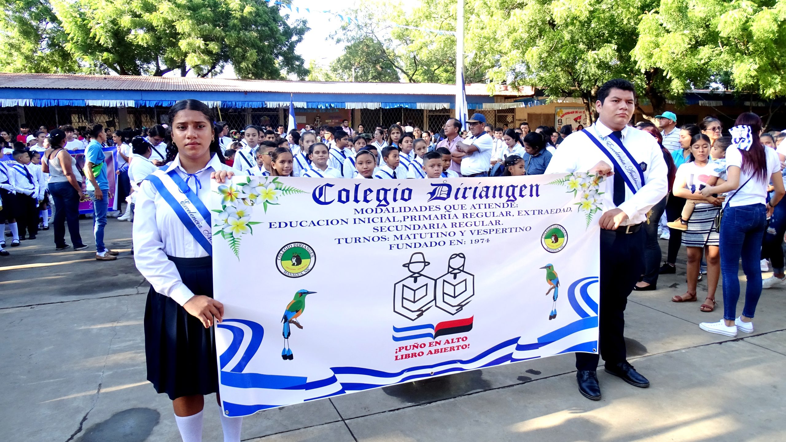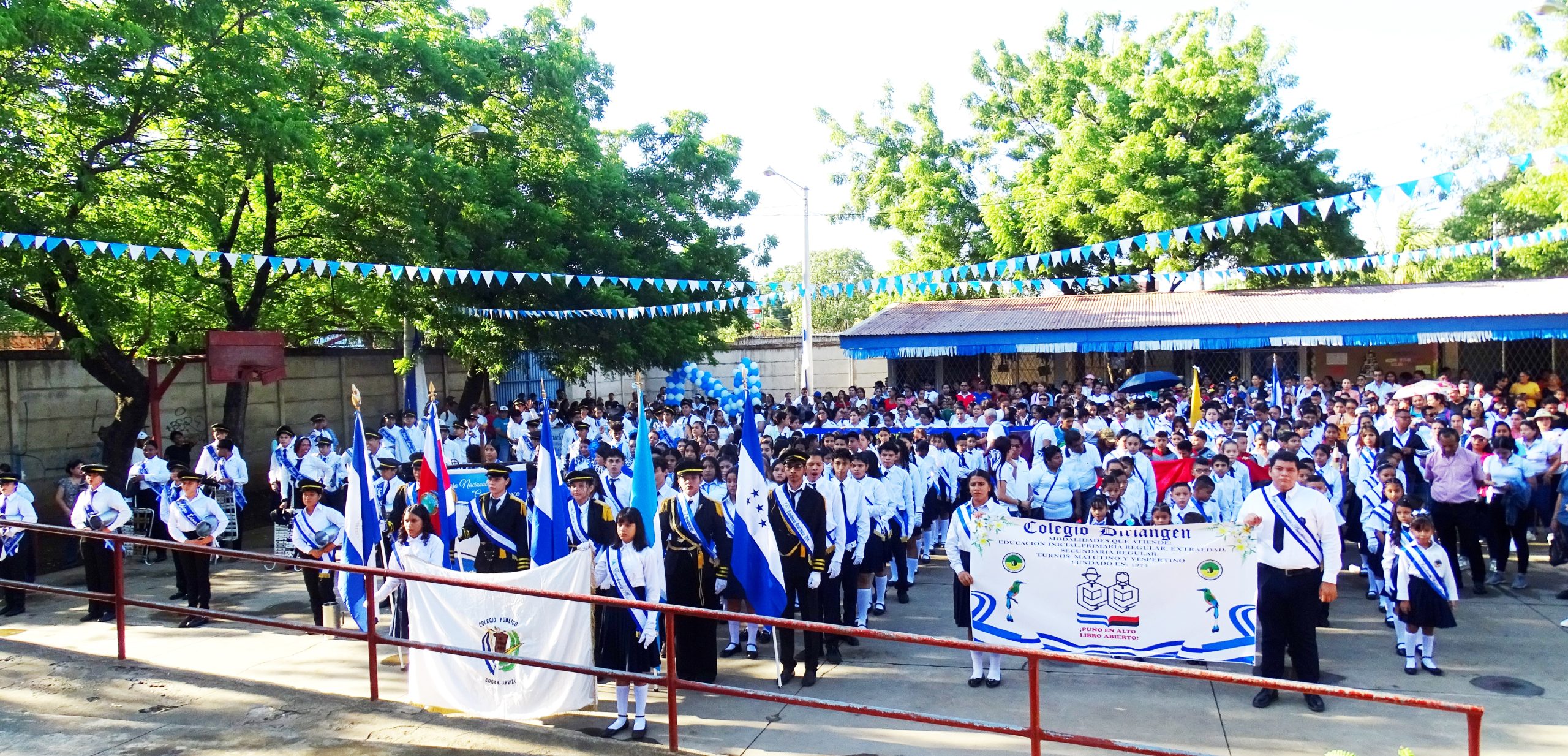 En el Colegio Edgar Arbizú, del distrito VII, en Managua, desfilaron con orgullo vistiendo los colores de nuestra bandera azul, blanco y azul, otros engalanados con huipiles, y bloques representativos de excelencia académica, brigadas ambientales, alfabetización, deportistas, entre otros.