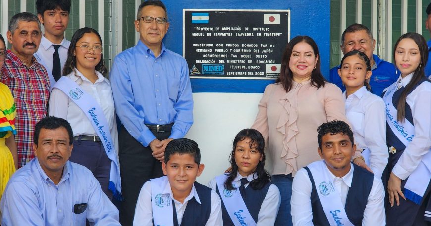 La comunidad educativa del municipio de Teustepe en Boaco, celebró la inauguración del proyecto de ampliación del Centro Educativo Miguel de Cervantes Saavedra con la valiosa cooperación del Gobierno de Japón.