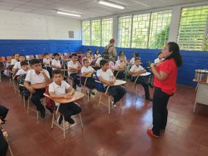 La compañera Alondra Martínez, madre de familia de dos estudiantes de Educación Inicial y Primaria, expresó sentirse contenta con la dinámica que iniciaron las clases en el centro y espera que sus hijos tengan éxito en sus estudios.
