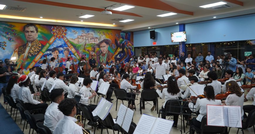 Desde el Auditorio Elena Arellano, se celebró la bienvenida al mes del Nacimiento de Jesús, mes de la Paz, Unidad, Amor, Esperanza y Concordia, con un emotivo concierto protagonizado por más de cien niñas, niños, adolescentes y jóvenes de la Orquesta Inicial y Elemental de la Escuela Alfredo Barrera, así como protagonistas de Coros Rubén Darío de Managua.