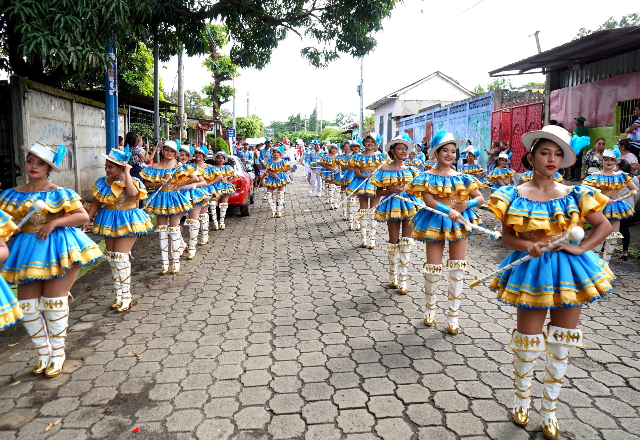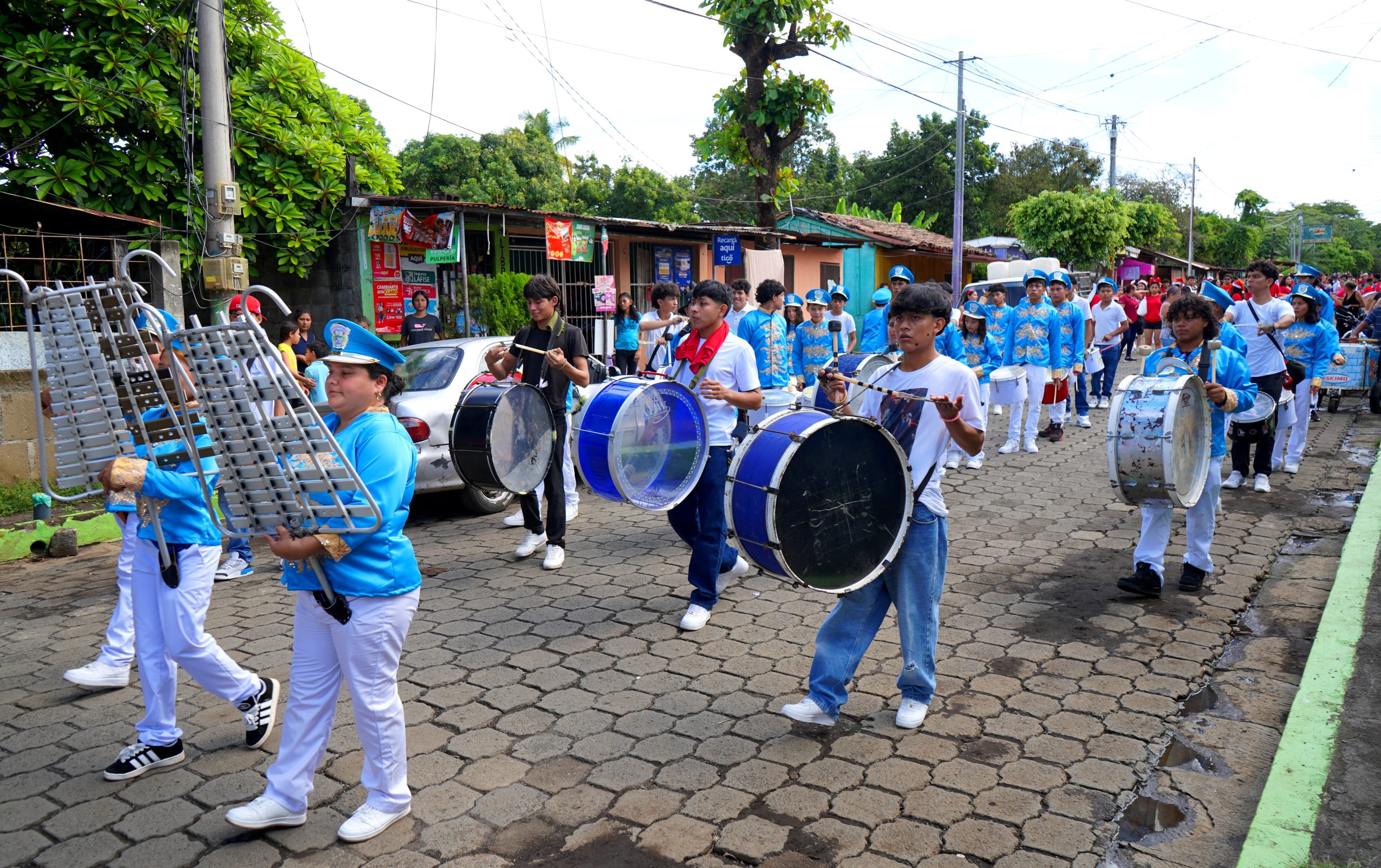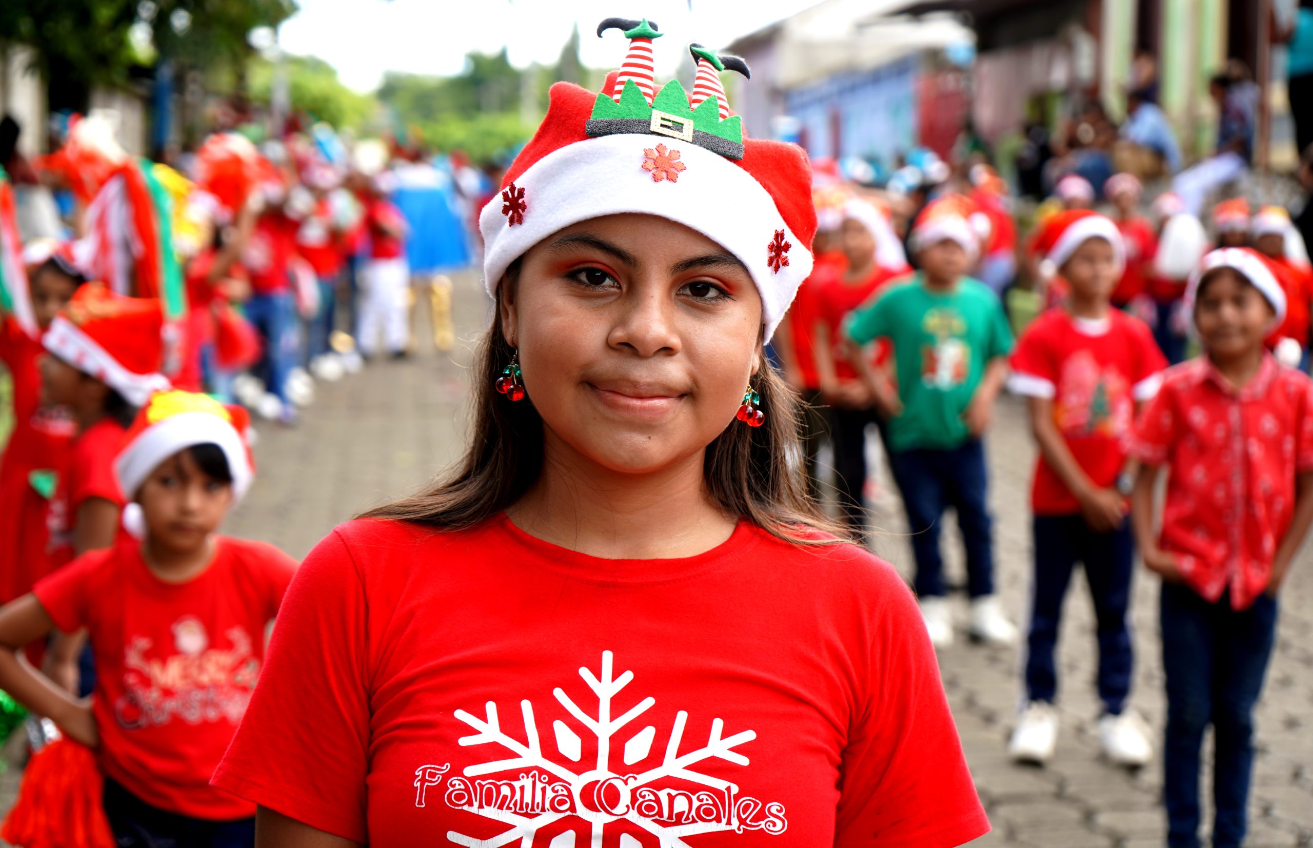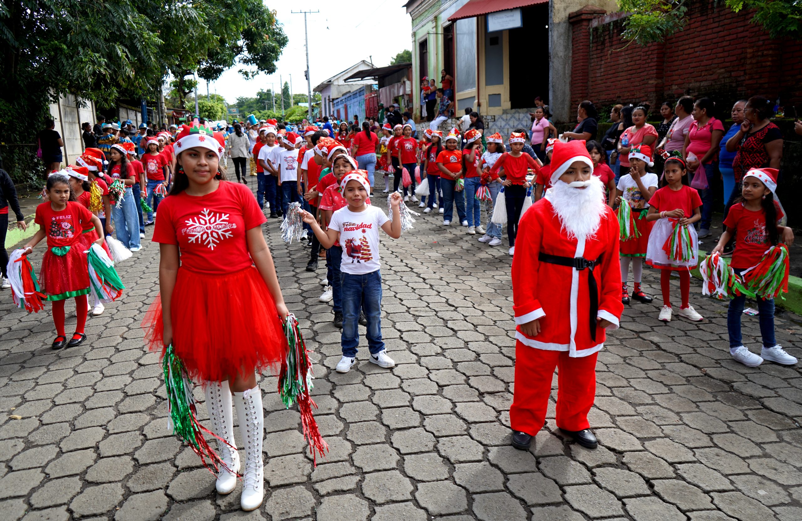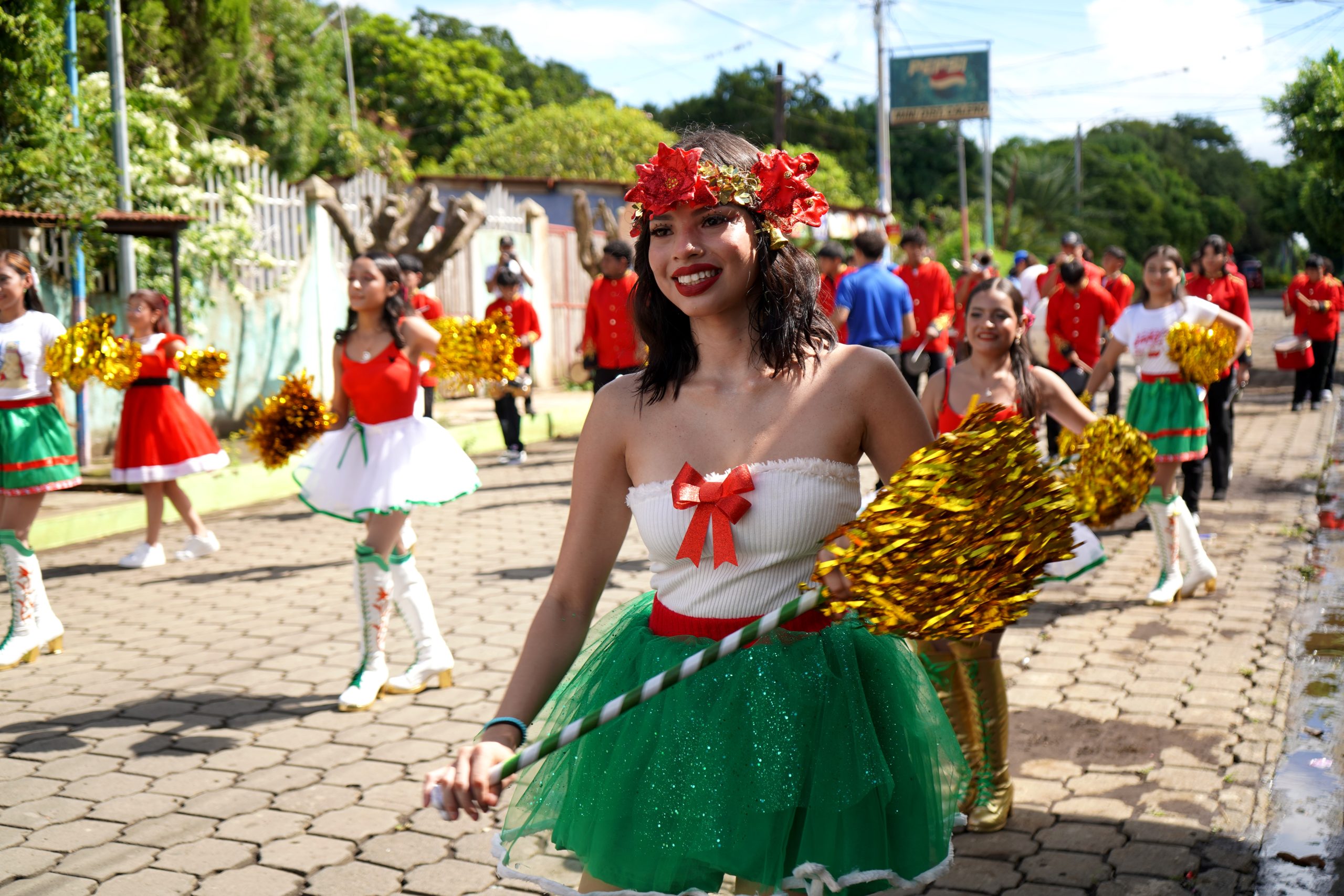 Niñas, niños y jóvenes de siete centros educativos del municipio de Ticuantepe, en Managua, protagonizaron con mucho entusiasmo un hermoso desfile navideño con bandas y gimnasias rítmicas.