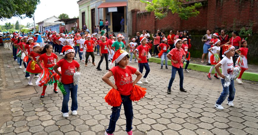 Niñas, niños y jóvenes de siete centros educativos del municipio de Ticuantepe, en Managua, protagonizaron con mucho entusiasmo un hermoso desfile navideño con bandas y gimnasias rítmicas.