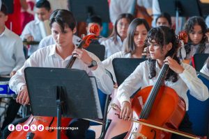 “Estamos muy contentos, llenos de orgullo de poder el día de hoy presentar este concierto regional de orquesta sinfónica en el que nuestros niños y niñas, 185 protagonistas de las orquestas de Jinotepe, de Managua, de todos los distritos en los municipios de Tipitapa y Ciudad Sandino. Hoy es la máxima cúspide de todo un esfuerzo, de todo un proceso que hemos venido realizando para incorporar, como parte de esa formación y desarrollo integral que han mandatado nuestros Co-Presidentes en la educación, el fortalecimiento del aprendizaje musical y artístico de todos los estudiantes”, afirmó Arauz.