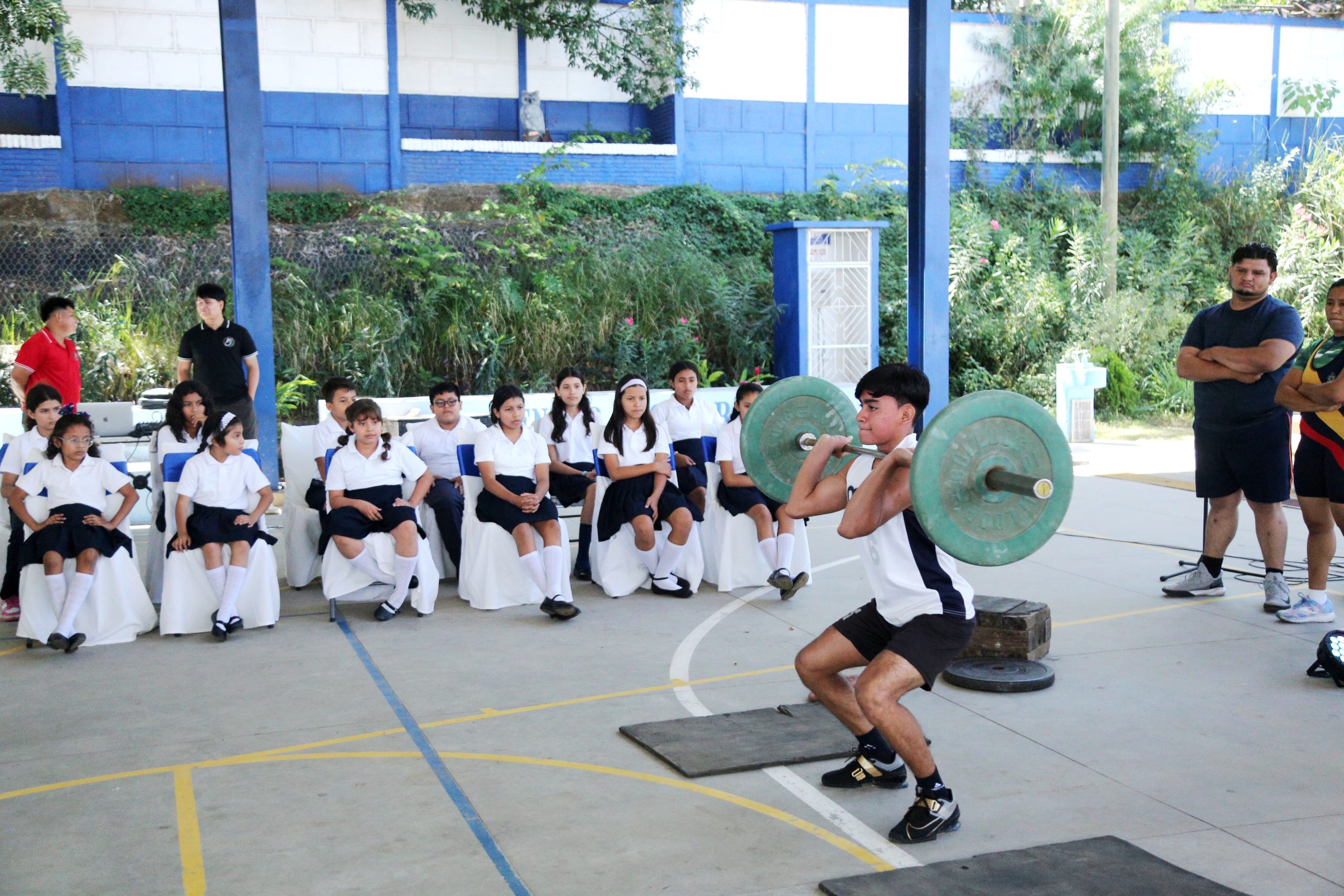 Estudiantes de Secundaria del Centro Educativo Barrilete de Colores, ubicado en el DI de Managua, participaron esta mañana en una exhibición de levantamiento de pesas en categoría escolar, organizada por el Ministerio de Educación (MINED) en coordinación con la UNAN-Managua, para promover la práctica de este deporte olímpico.