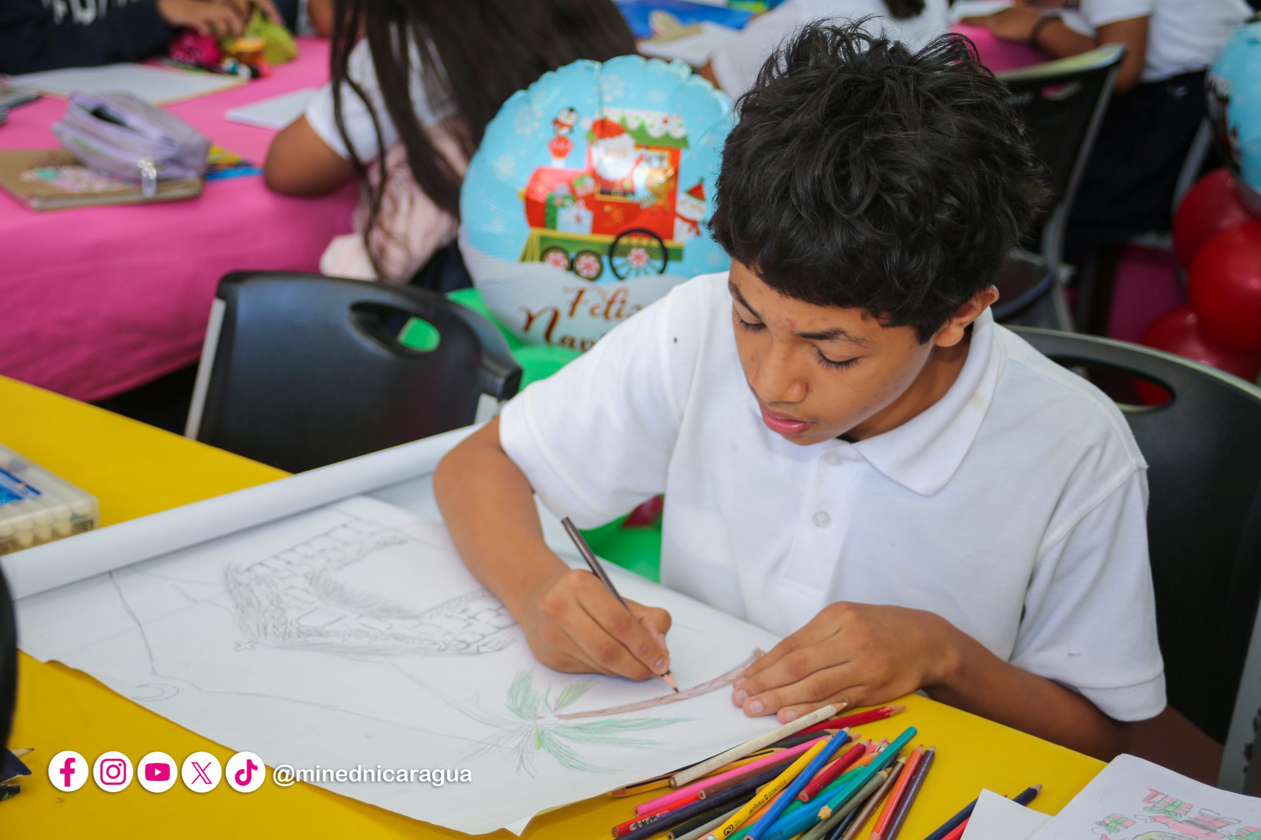 Las celebraciones decembrinas se viven con gran alegría desde los centros escolares del país, donde estudiantes, maestros y familias participan en distintas actividades tradicionales, culturales y artísticas como: exposición de dibujos y pinturas, con motivos navideños.