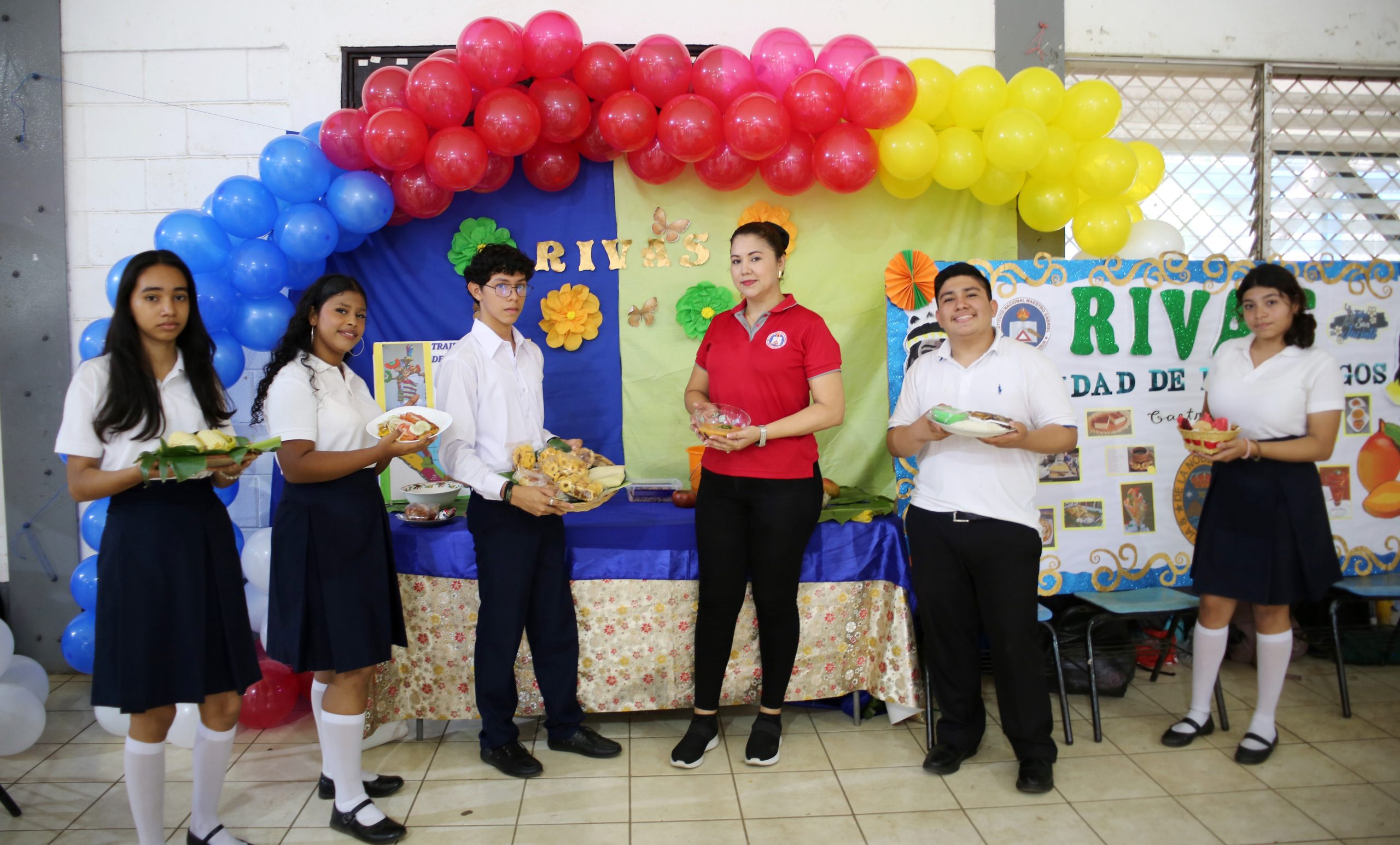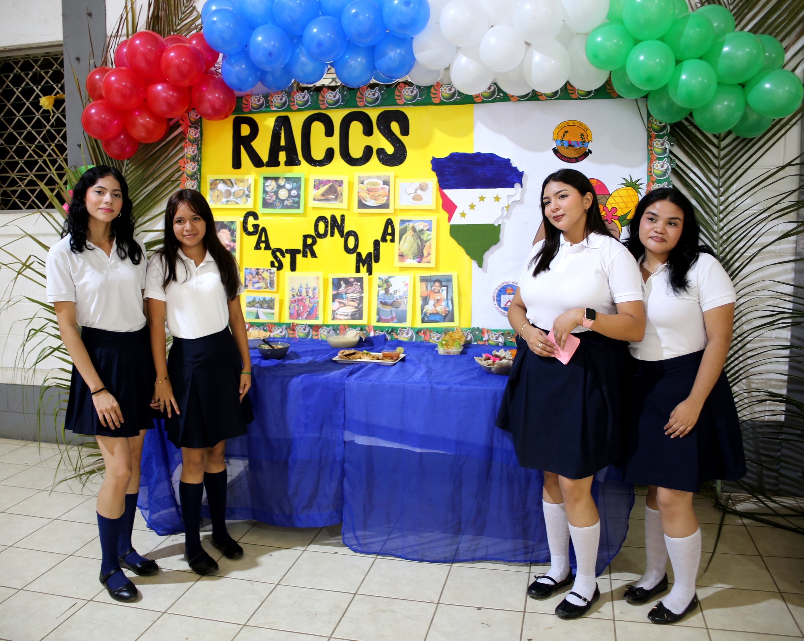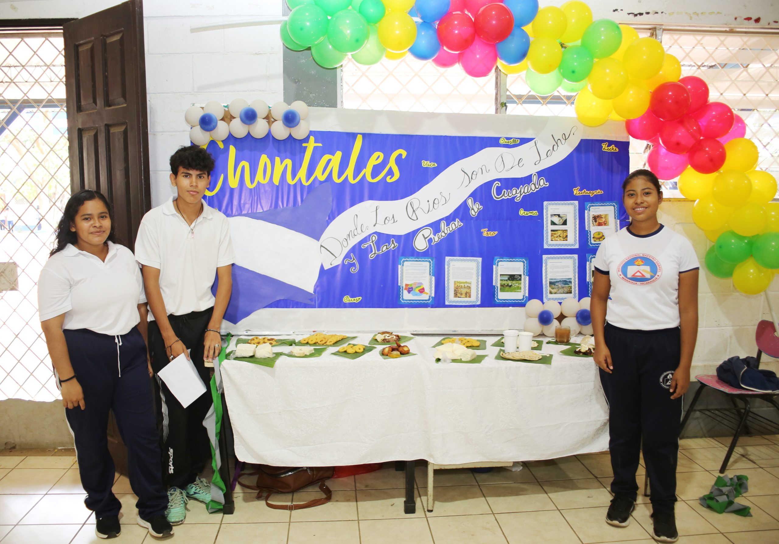 Fernanda Alguera, estudiante de undécimo grado, presentó junto a sus compañeros la variedad gastronómica del departamento de León, como: Quesillo nagaroteño, BX (fritanga), enchiladitas, cajetas de coco, alfeñique, trocantes, vigorón o yuca con charrasca, entre otros.