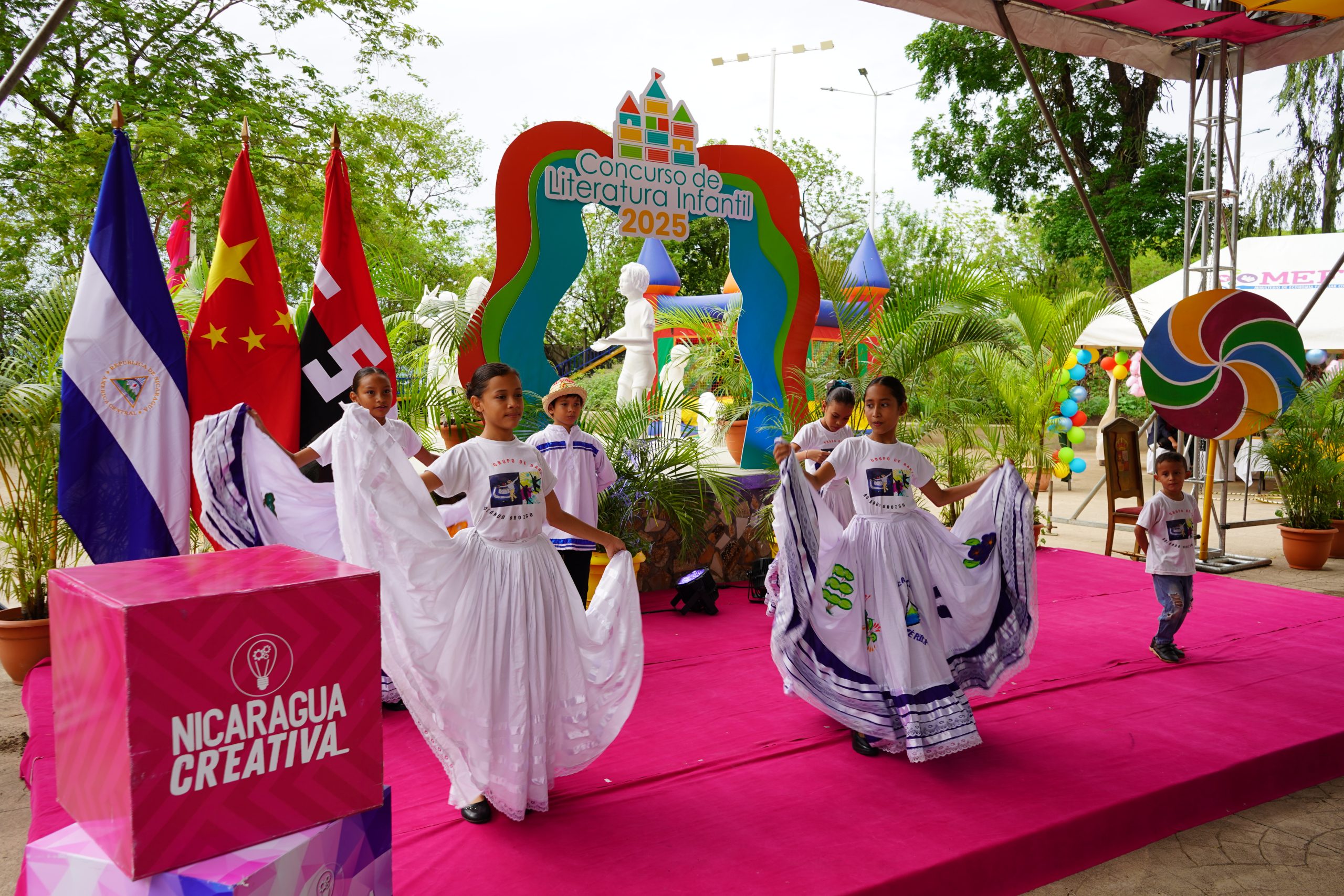 El evento tuvo lugar en el Parque Las Piedrecitas, en Managua, como parte de las actividades conmemorativas del Día de la Niñez Nicaragüense. Contó con la partición de la compañera Reyna Rueda, Alcaldesa de Managua, el señor Shi Yulong, Segundo Secretario de la Embajada de la República de China, compañera Sonia Porras, Secretaria Adjunta de Economía Creativa y Naranja de la Presidencia, compañera Darling Hernández, Ministra de la Juventud, Compañera Frania Peralta, Secretaria General del Ministerio para la Promoción de los Emprendimientos, compañera Blanca Arauz, del Instituto de las Culturas de Pueblos y Juventudes, compañera Tamara Martínez, Ministerio de Educación.