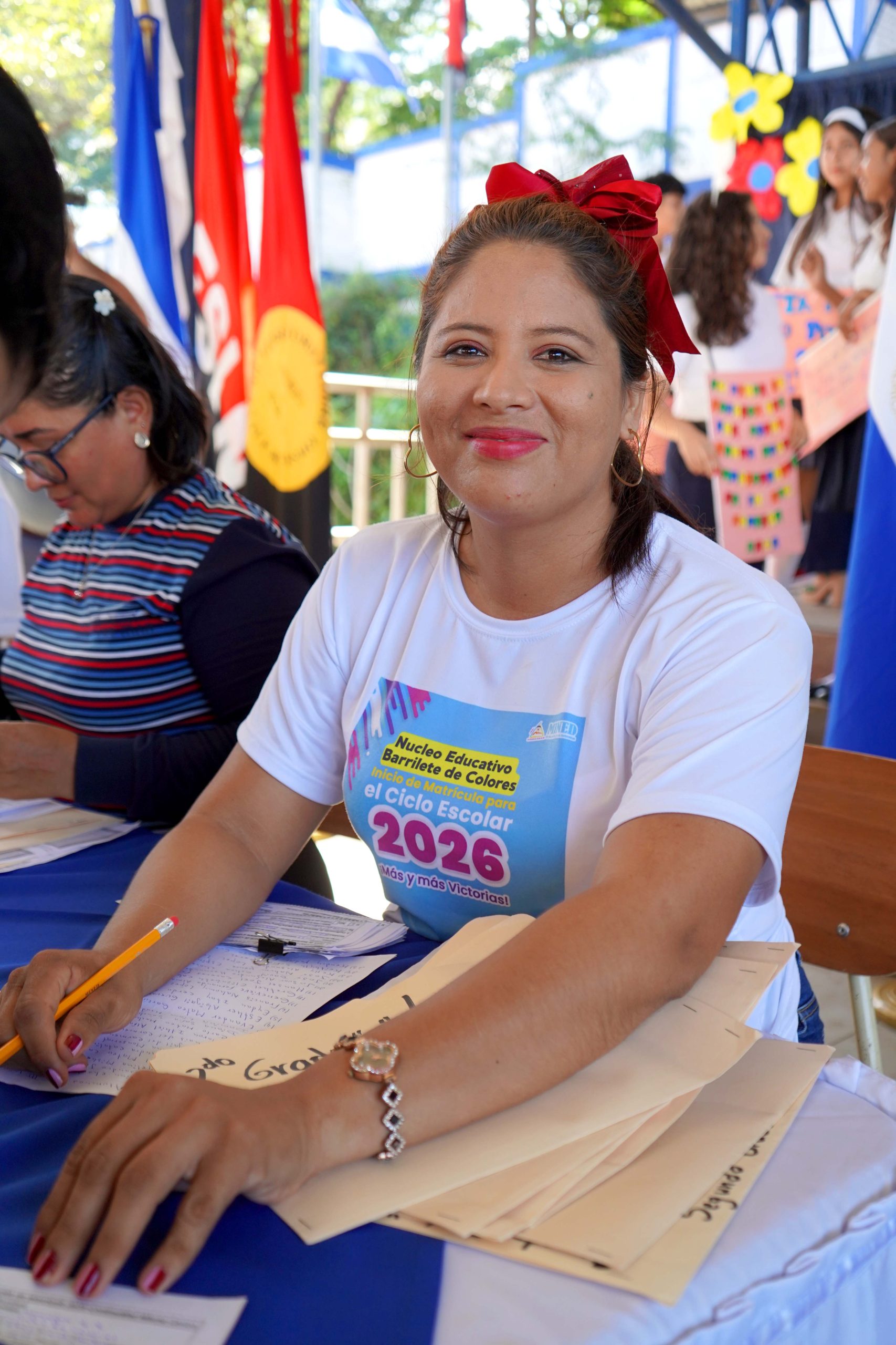 Arauz, felicitó a las madres, padres de familia y tutores, por asistir desde tempranas horas a realizar la matrícula de sus hijos e hijas, lo cual representa el compromiso y trabajo conjunto de la familia y escuela.