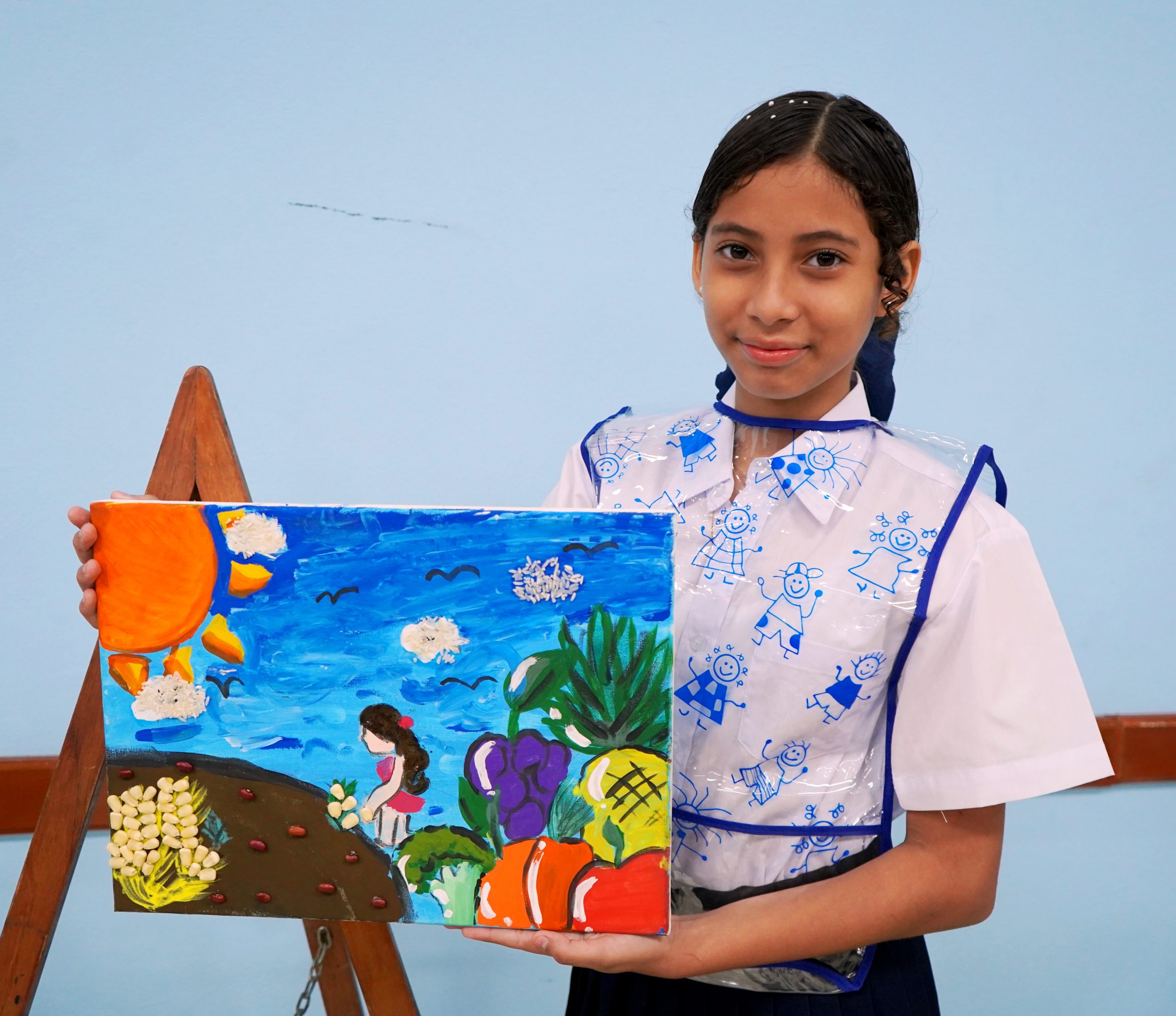 Por su parte el estudiante, Ian Espinales, explicó que en su pintura, muestra las bondades que ofrece la naturaleza, como el agua, frutas y verduras. Espinales manifestó, que es la primera vez que participará en este concurso, el cual es una oportunidad para mostrar a las personas lo deliciosas que son las frutas y la importancia de consumirlas.