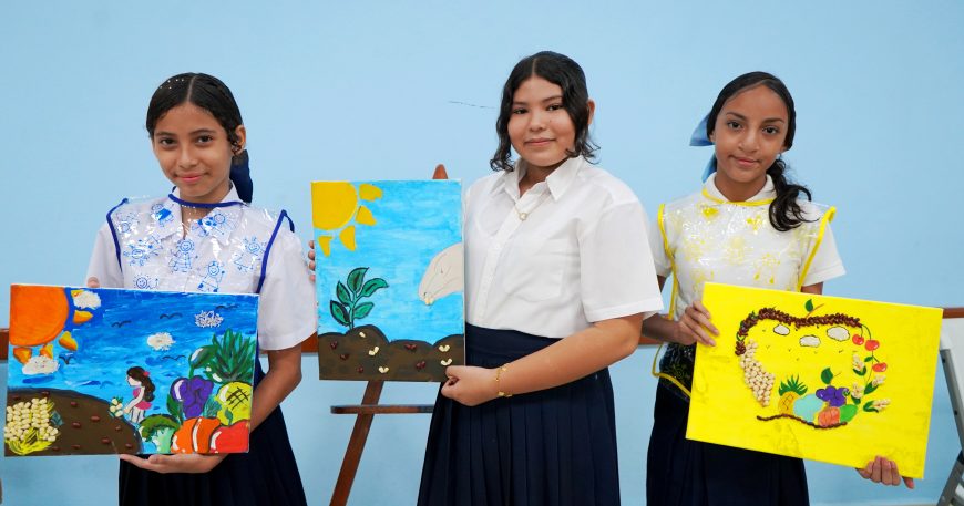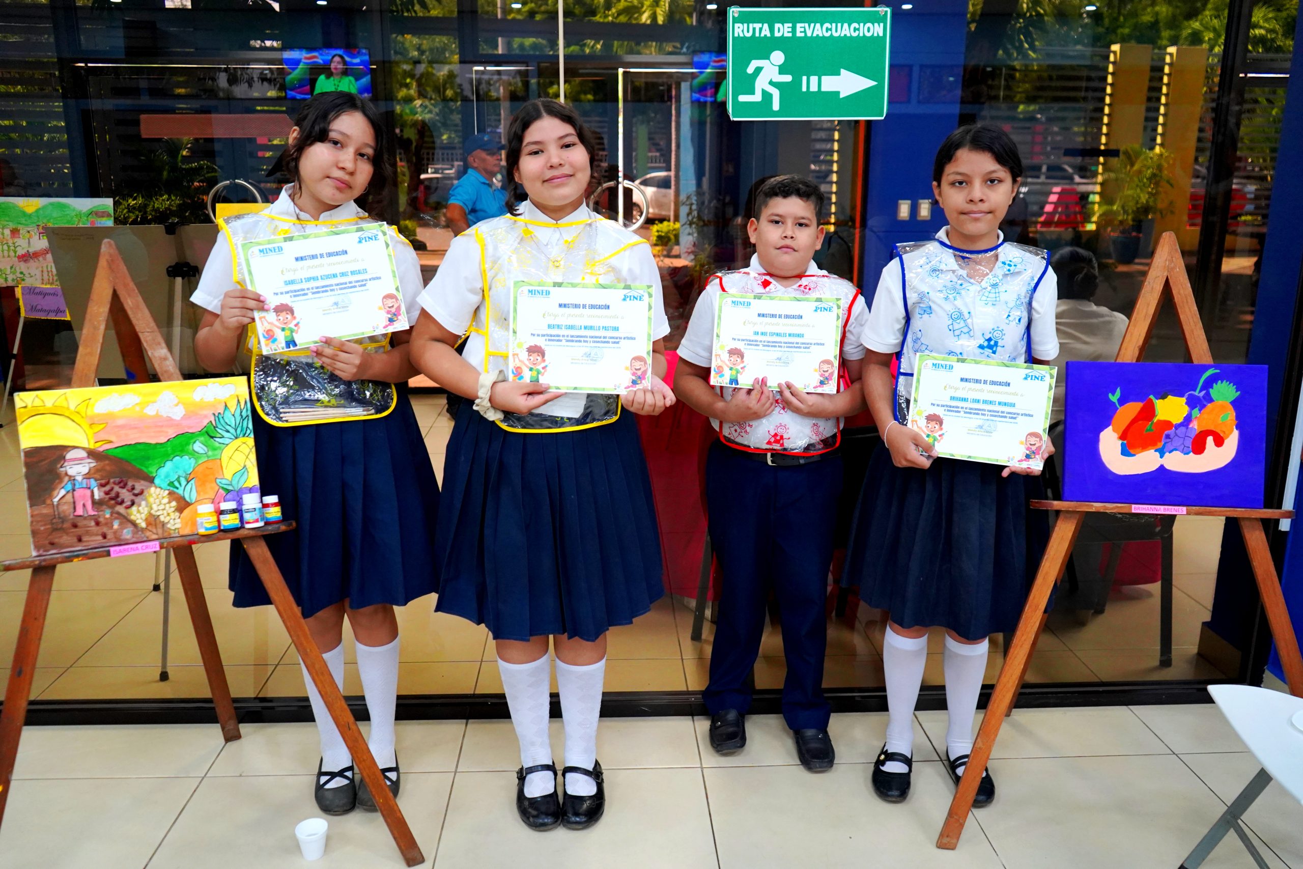 Durante el lanzamiento, estudiantes del Colegio Fernando Gordillo, del distrito III en Managua, presentaron obras artísticas enfocadas en el tema de la alimentación saludable y recibieron diplomas de reconocimiento por su participación.