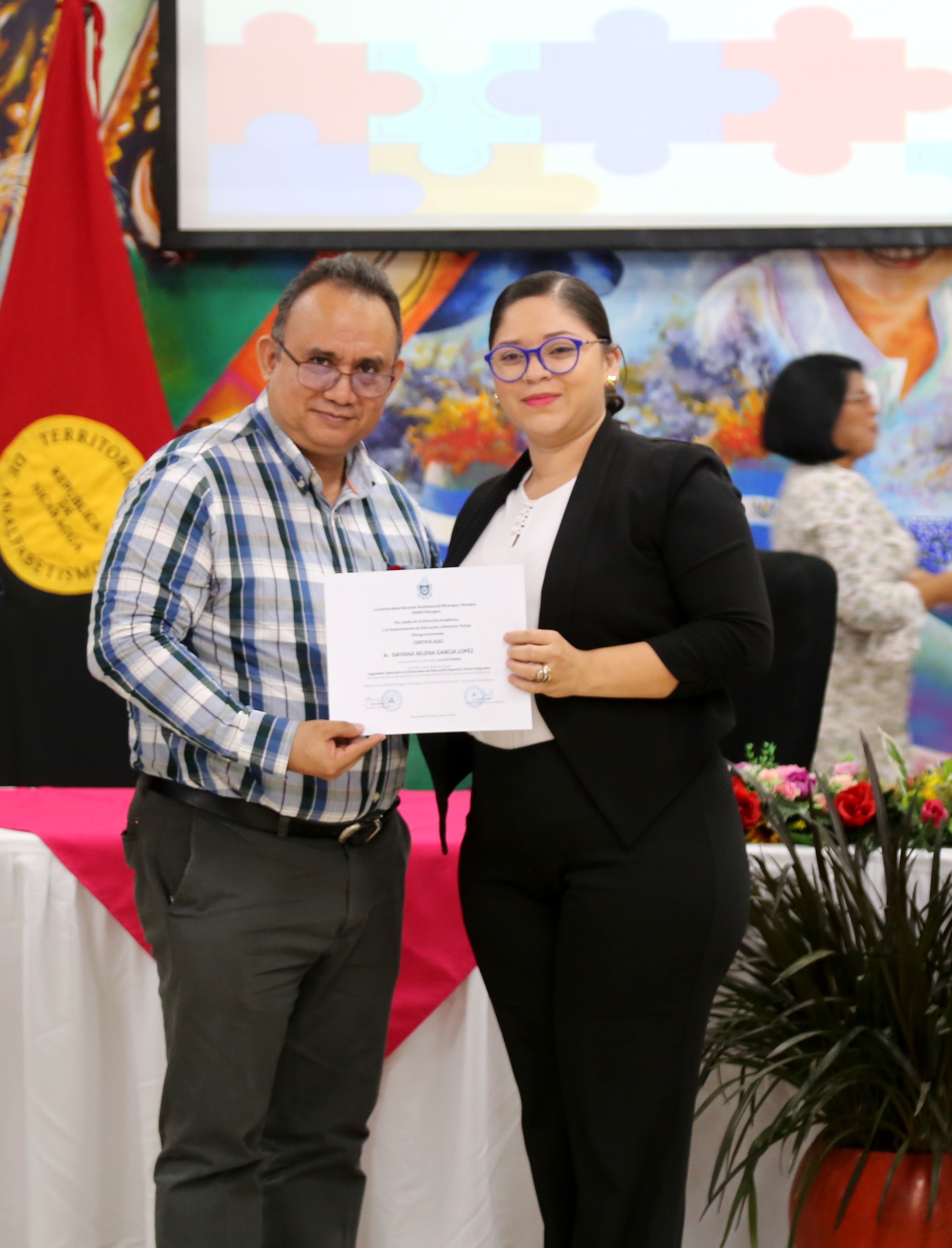 Asimismo, Isaías Velásquez de la Escuela Especial Melania Morales, de Managua, dijo que atiende a 11 niños con autismo y que su formación en logopedia le servirá para emplear nuevas estrategias “brindar educación de calidad que va a permitir que los procesos de aprendizajes sean reconocidos, porque no solo apuestan al formación continua, sino, a educación más inclusiva”, afirmó el docente.