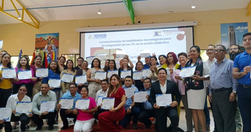 En ambiente de celebración y compromiso con la calidad educativa, el Ministerio de Educación (MINED) certificó a 593 maestros y maestras de secundaria al culminar con éxito el Curso Especializado sobre Tecnológicas e Integración de las TIC en la acción didáctica, para dinamizar y mejorar aprendizajes en el aula.