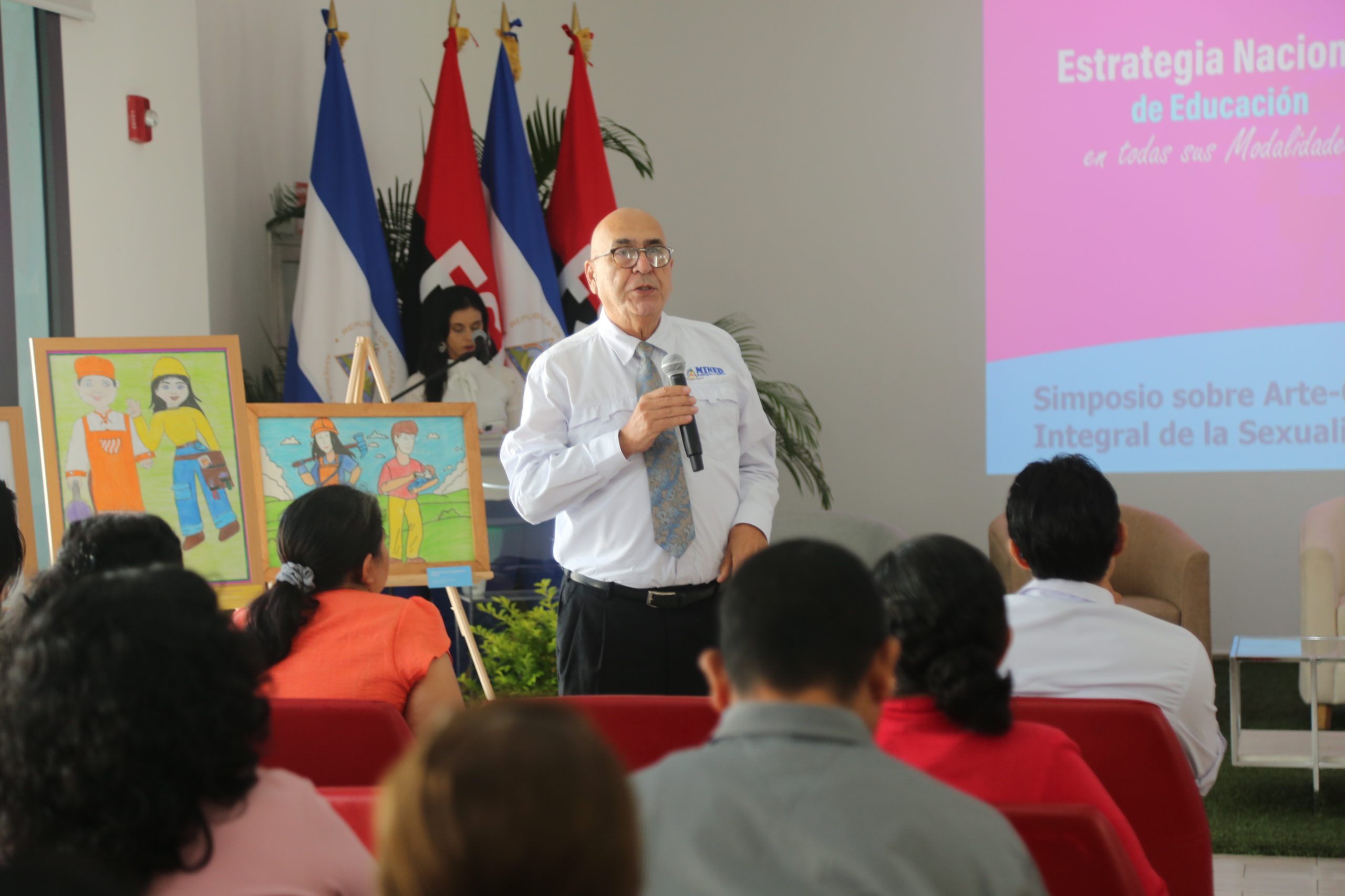 Desde el Centro de Convenciones Olof Palme, el Ministerio de Educación (MINED) celebró esta mañana un Simposio sobre Arte y Cultura, que congregó a docentes, asesores pedagógicos, municipales, departamentales, niños y niñas de coro y orquesta.