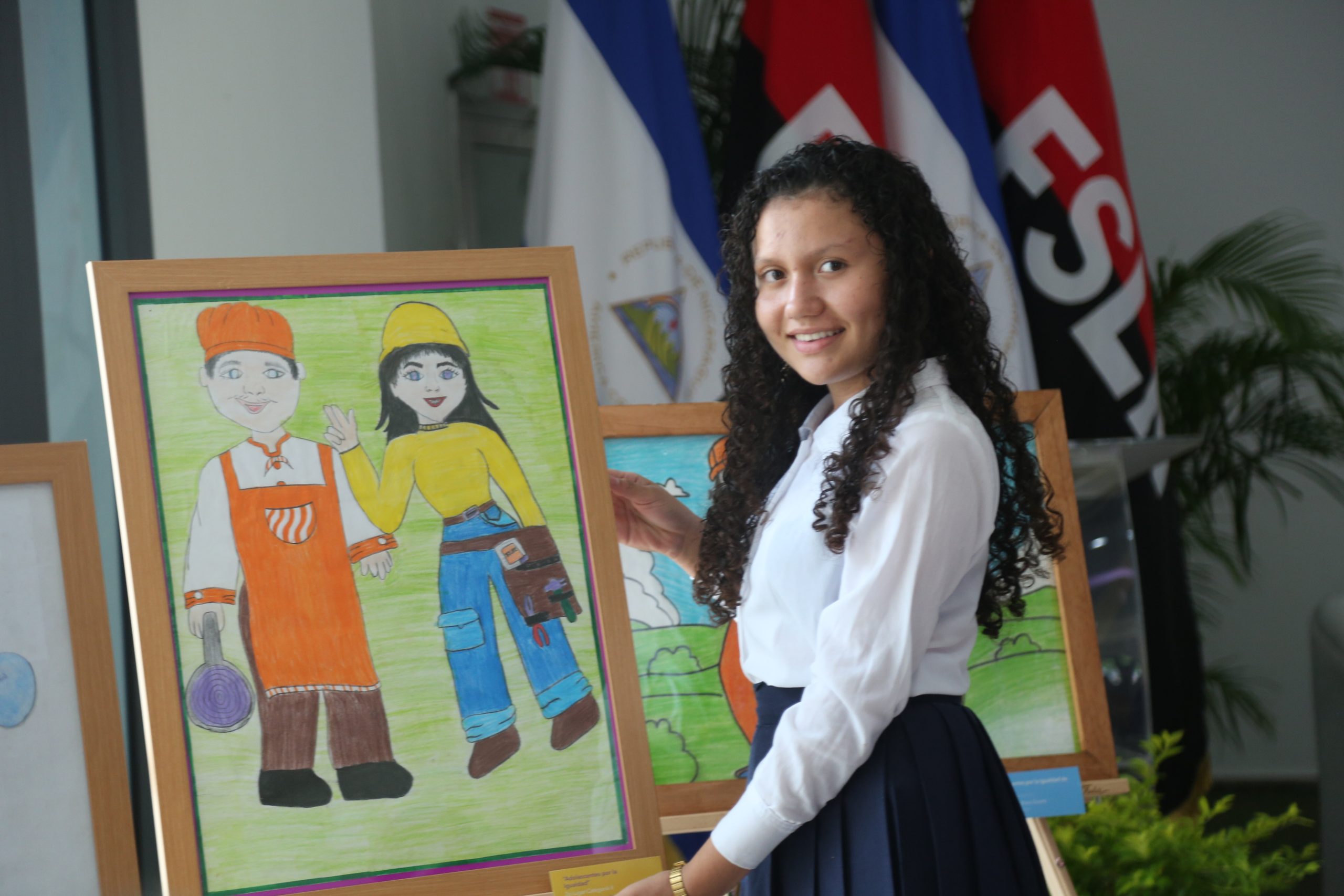 Perla Méndez, estudiante del Instituto Pedro Orozco, del departamento de Matagalpa, quien participó en este concurso, destacó que en su obra presentó que hombres y mujeres somos iguales.