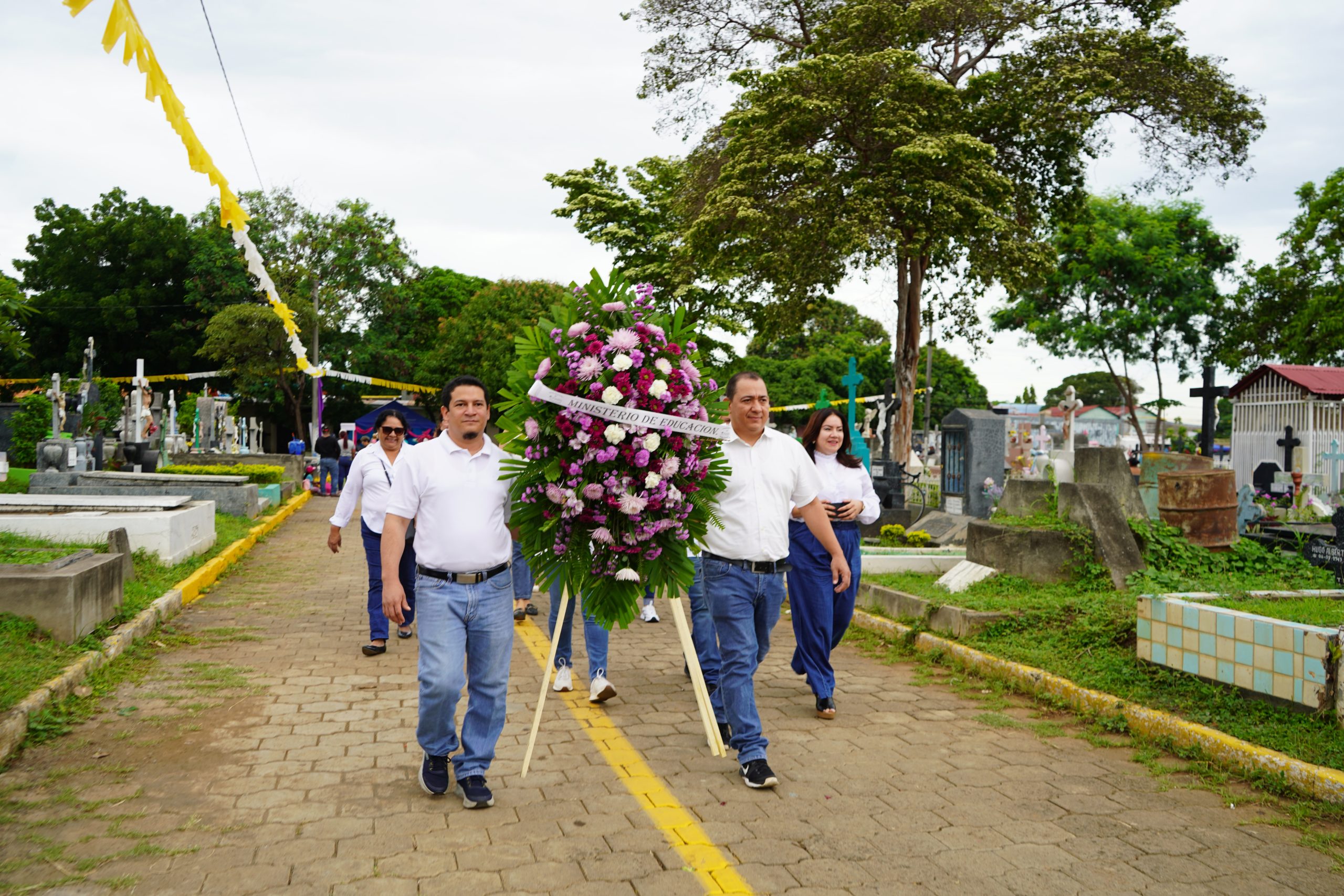 Autoridades educativas y servidores públicos del Ministerio de Educación (MINED) realizaron hoy una visita a los cementerios del país para rendir homenaje y colocar ofrendas florales en memoria de las maestras y maestros que dedicaron su vida a la transformación de la educación nicaragüense, dejando un legado que perdura en las nuevas generaciones.