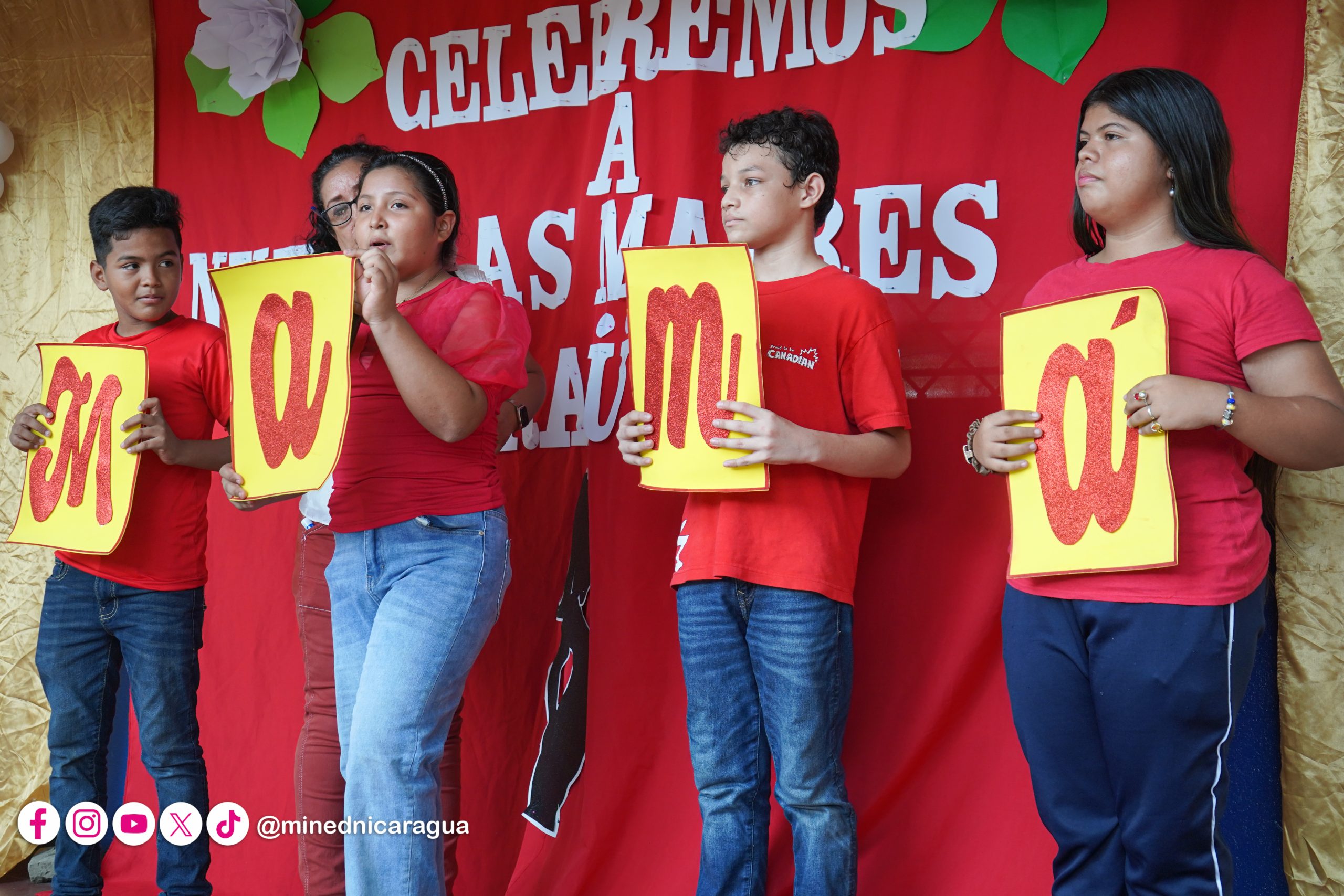 La ministra de Educación, Mendy Arauz Silva, compartió esta tarde en conferencia de prensa, las principales actividades realizadas en los centros educativos a nivel nacional, durante la semana, destacando el Plan Especial de Celebración del Día de las Madres Nicaragüenses, que incluyó diversas iniciativas enfocadas en honrar y reconocer a las madres, promoviendo valores de amor, respeto y unidad familiar, tales como: tarjetas con mensajes a Mamá, revista cultural, publicación de videos cortos para mamá, serenatas simultáneas de coros escolares, entre otros.