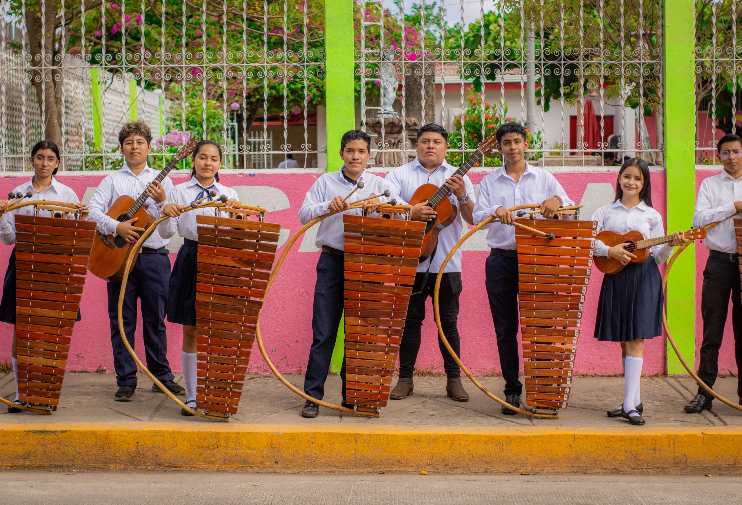 Al llegar al Parque Central, la comunidad educativa disfrutó de un solemne concierto de la Rondalla Estudiantil de Marimba del municipio, quienes dieron muestra de sus habilidades artísticas con la interpretación de: Flor de pino, Solar de Monimbó, Aquella indita y Nicaragua Mía.