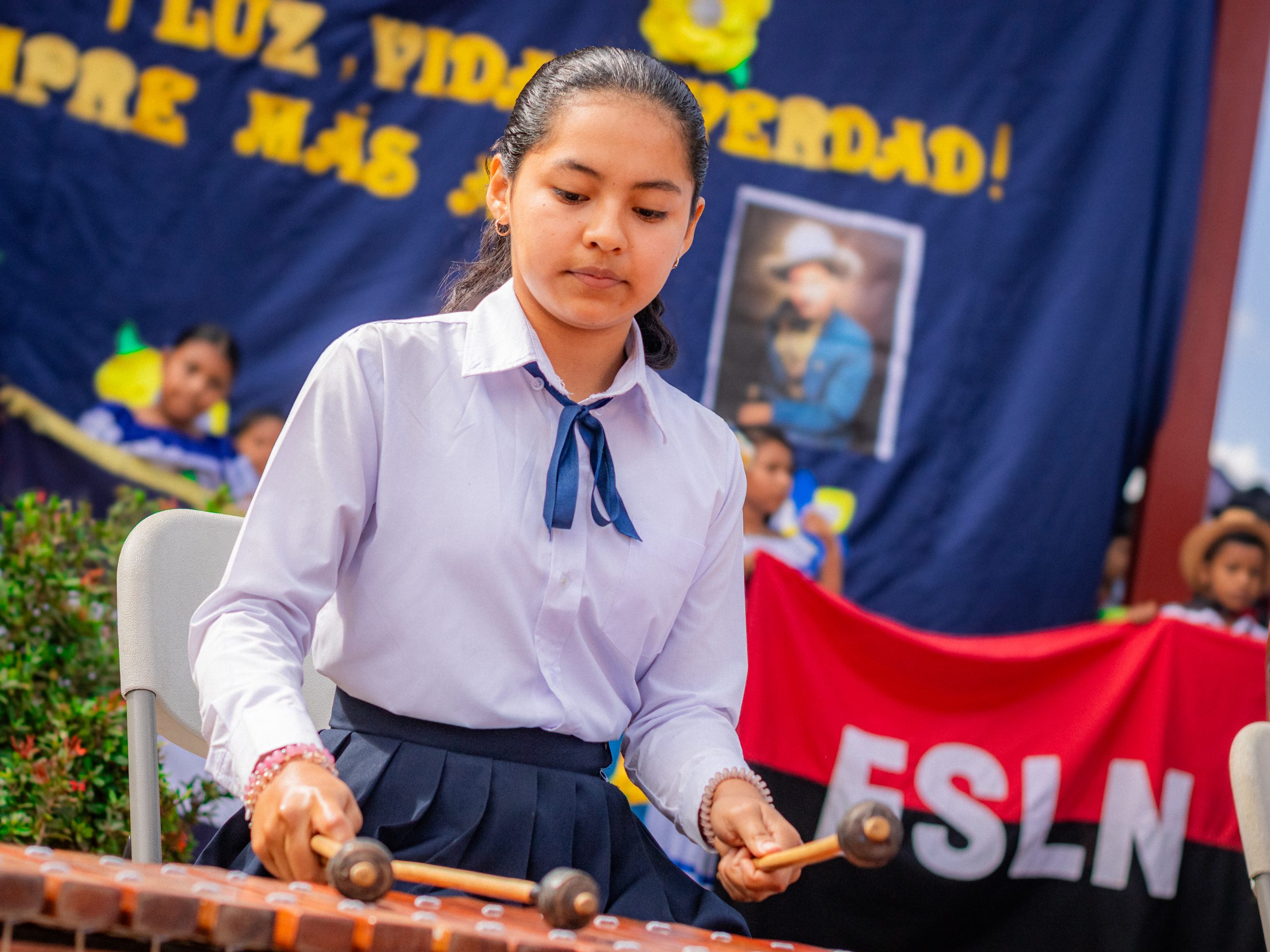 El concierto fue acompañado con bailes por las niños y niñas ataviados con huipiles tradicionales. Ashley Álvarez, integrante de la Federación de Estudiantes de Secundaria (FES), sostuvo que como estudiantes se comprometen a continuar el ejemplo de valentía, dignidad y soberanía nacional.