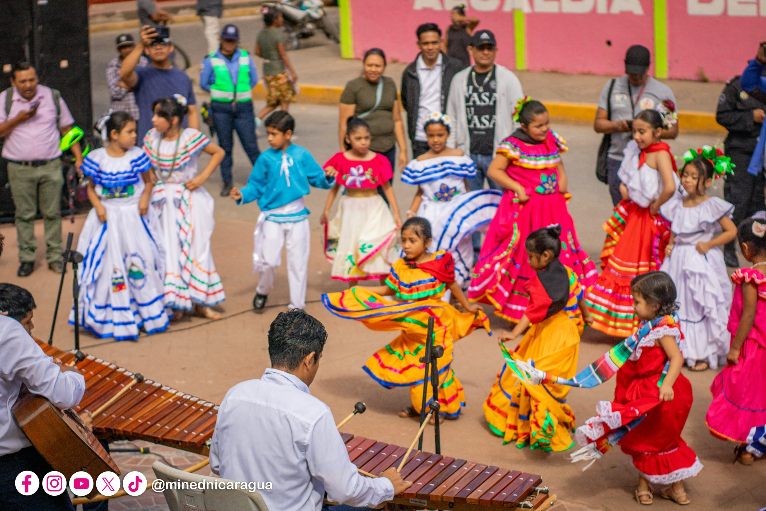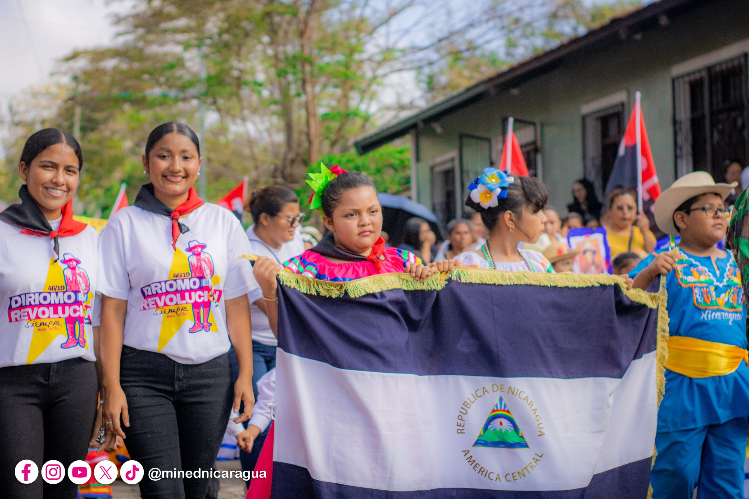 En Diriomo, Granada, niñas, niños de Educación Inicial y Primaria, junto a familias y maestros protagonizaron un hermoso desfile desde la Escuela Rafaela Herrera, hasta el Parque Central del municipio.