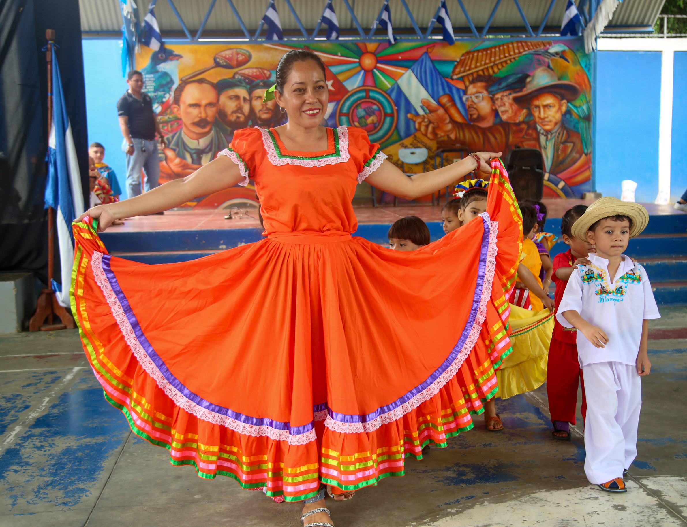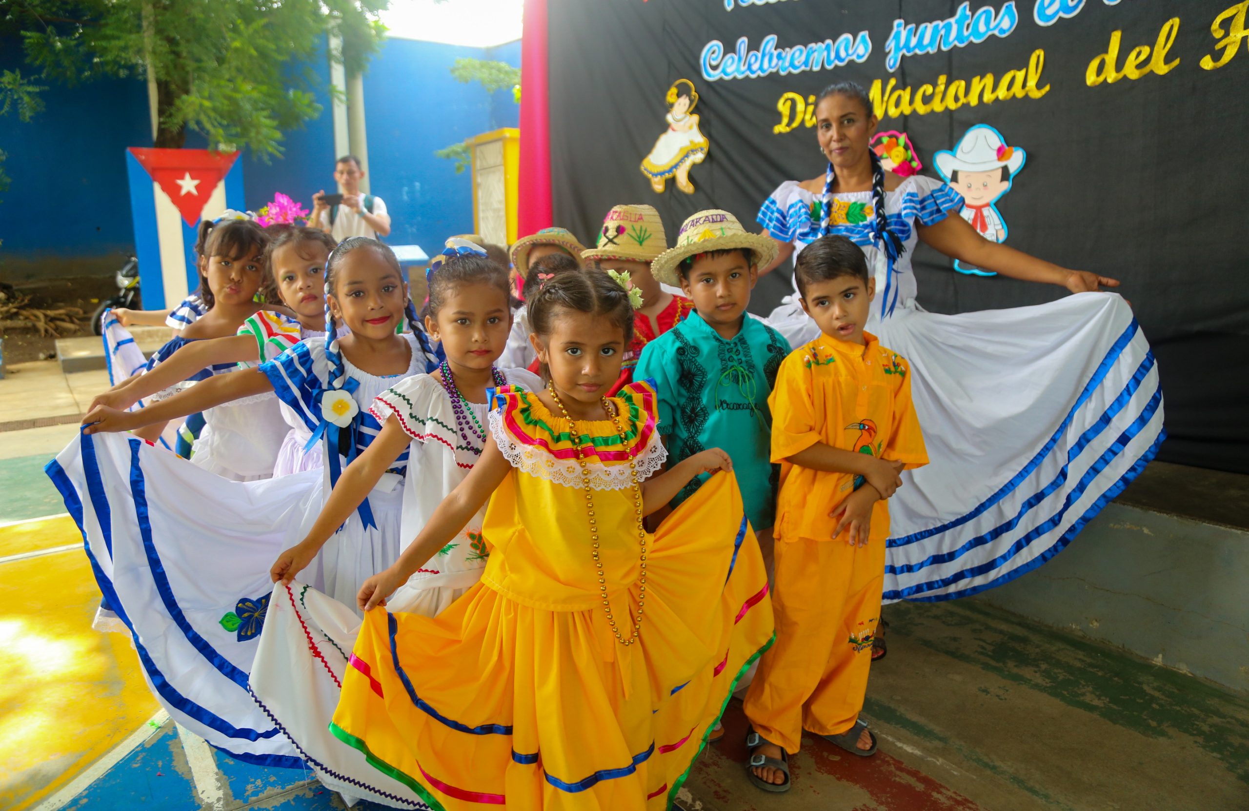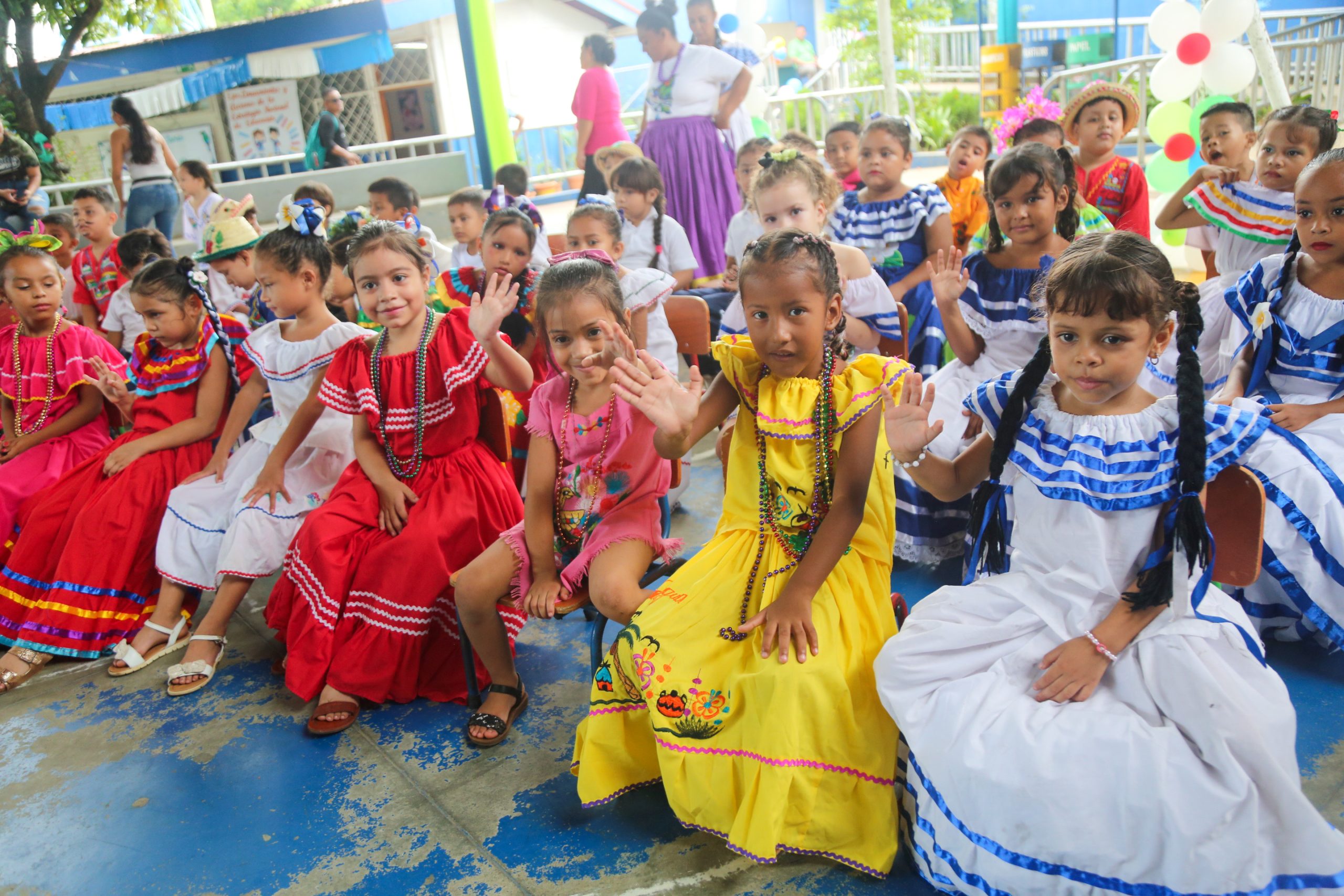 Los pequeños, acompañados por sus docentes, desfilaron contentos, mostrando los vibrantes colores de sus huipiles adornados con flores de sacuanjoche, sombreros de palma y caites.