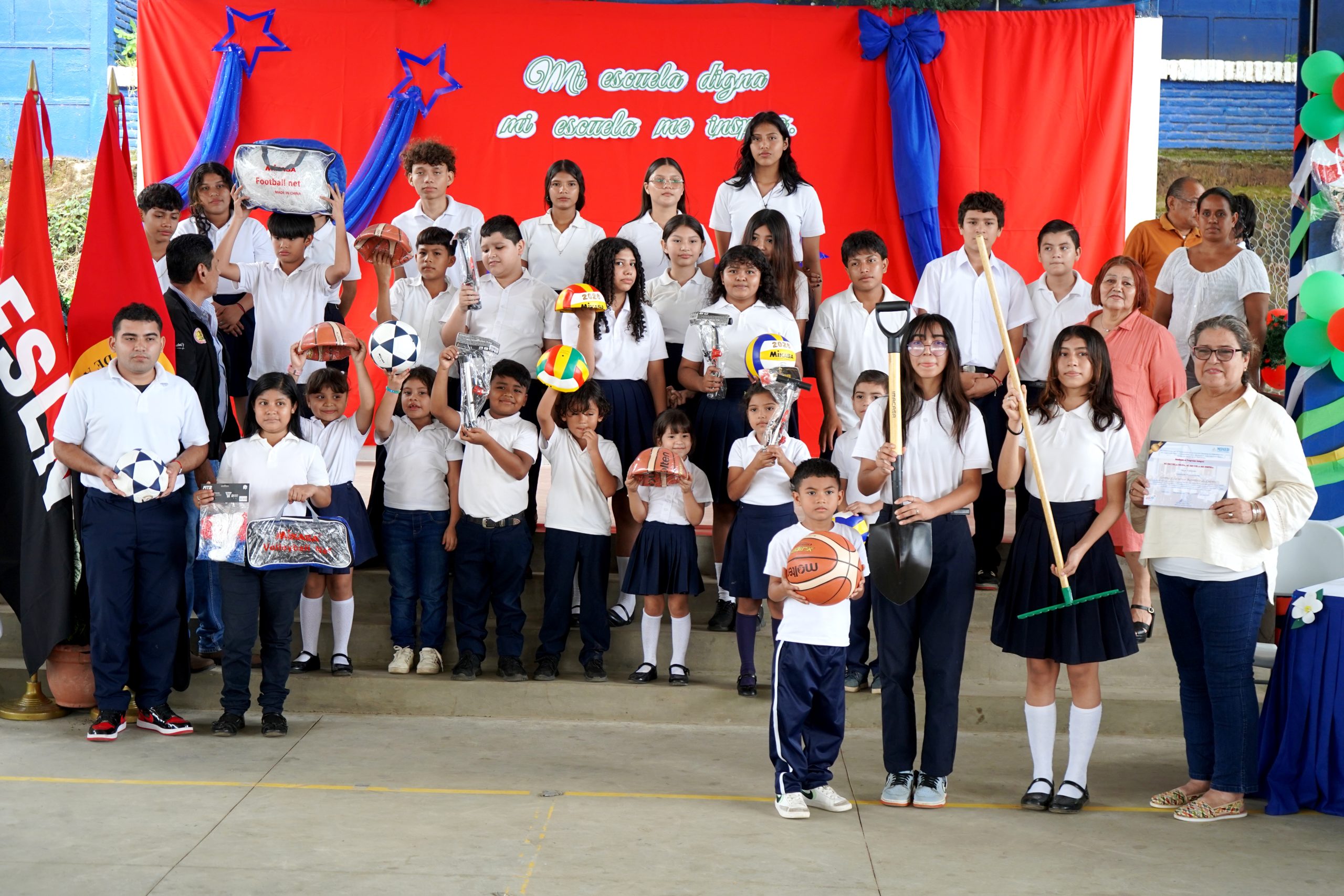 Como parte de la premiación se entregó certificado a la dirección del centro, materiales deportivos: balones de fútbol, voleibol, básquet, net para estos deportes, así como herramientas para actividades ambientales como: palas, rastrillo, piocha, coba, entre otros.