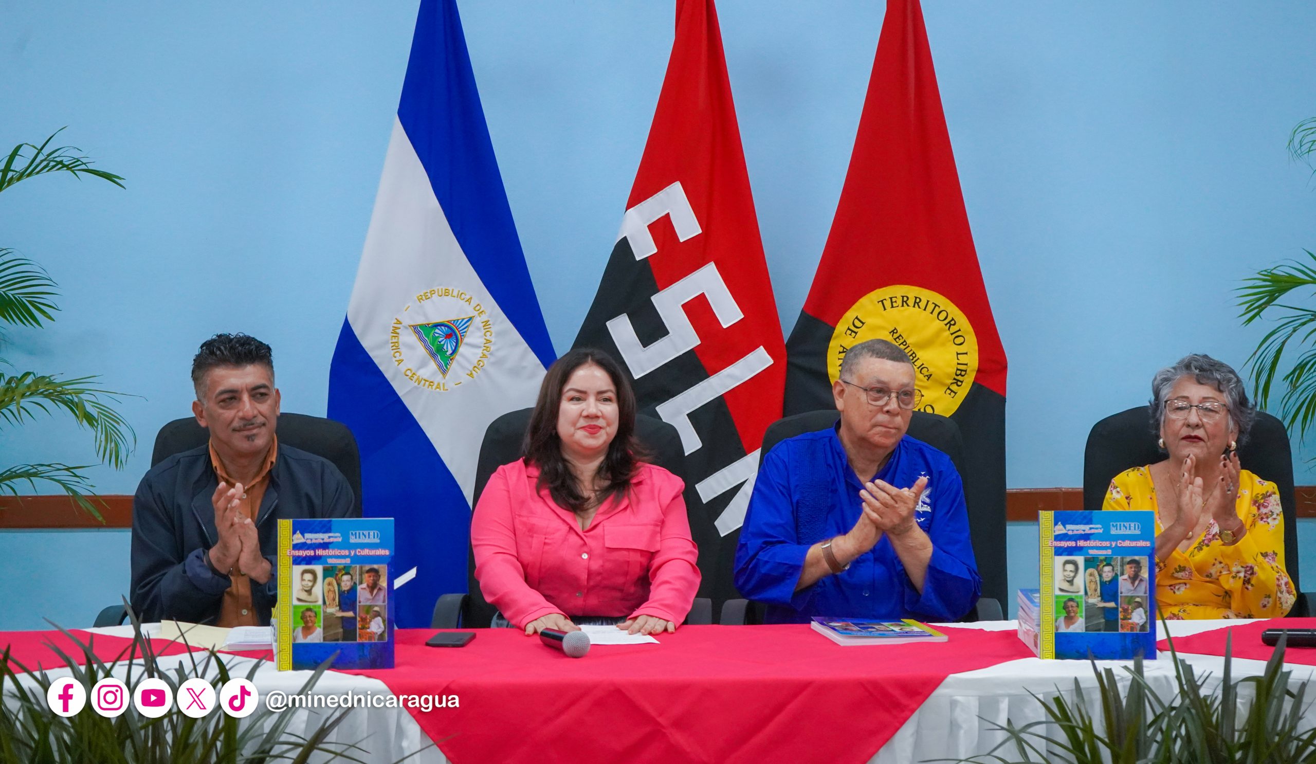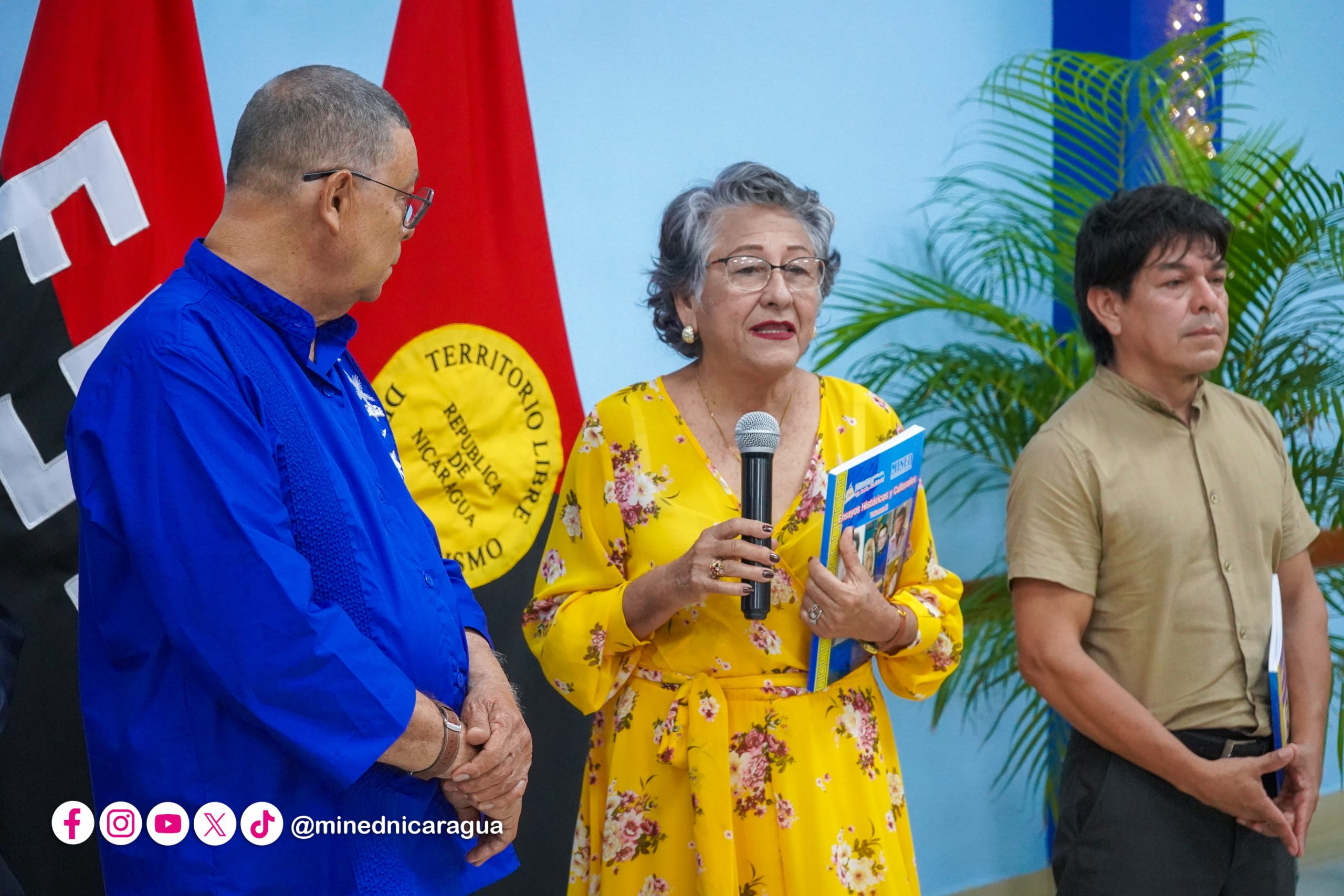 En el Auditorio Elena Arellano del MINED, se reunieron el compañero López, la Ministra de Educación, Mendy Arauz, protagonistas del libro y servidores públicos, para conocer los detalles de esta importante obra.