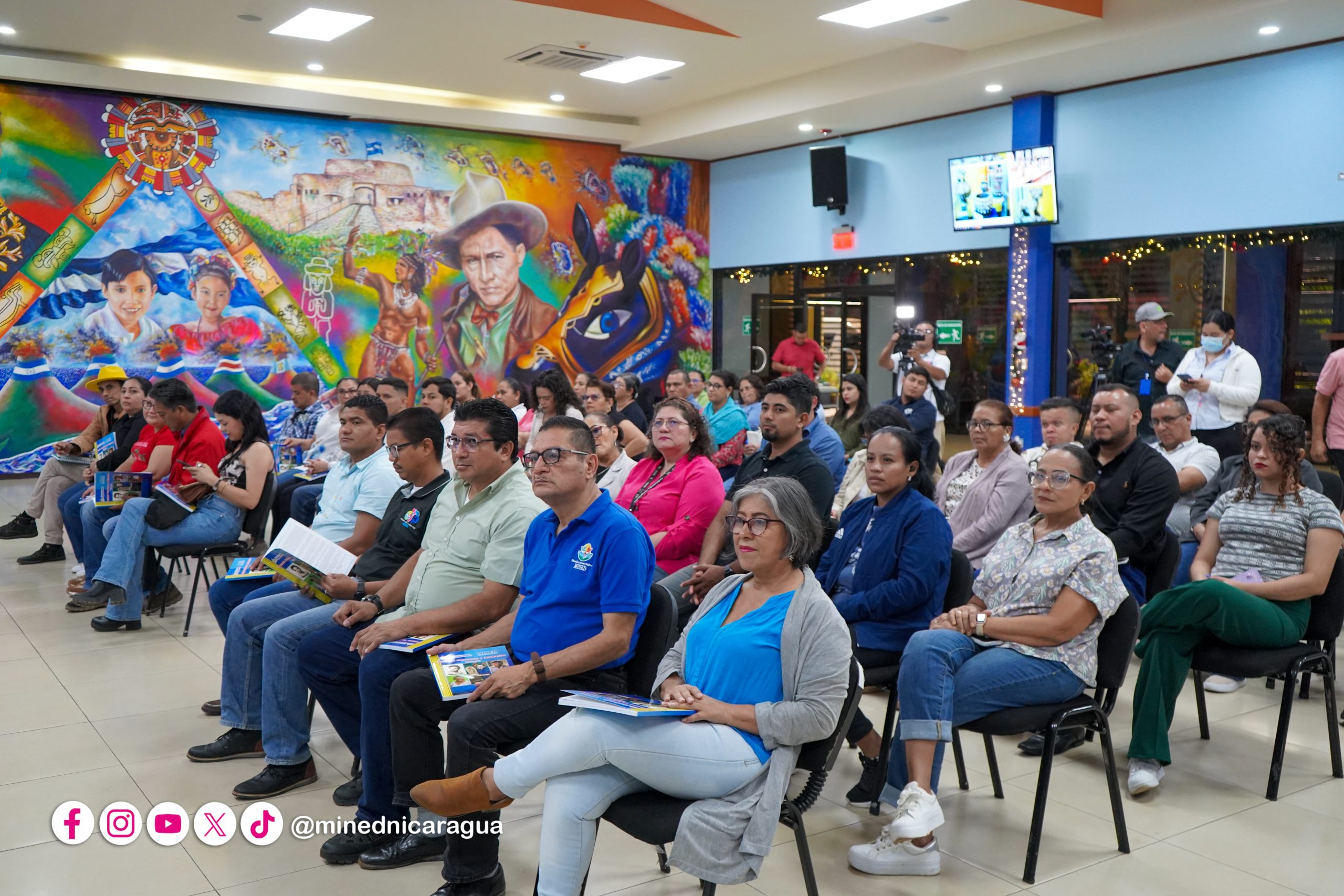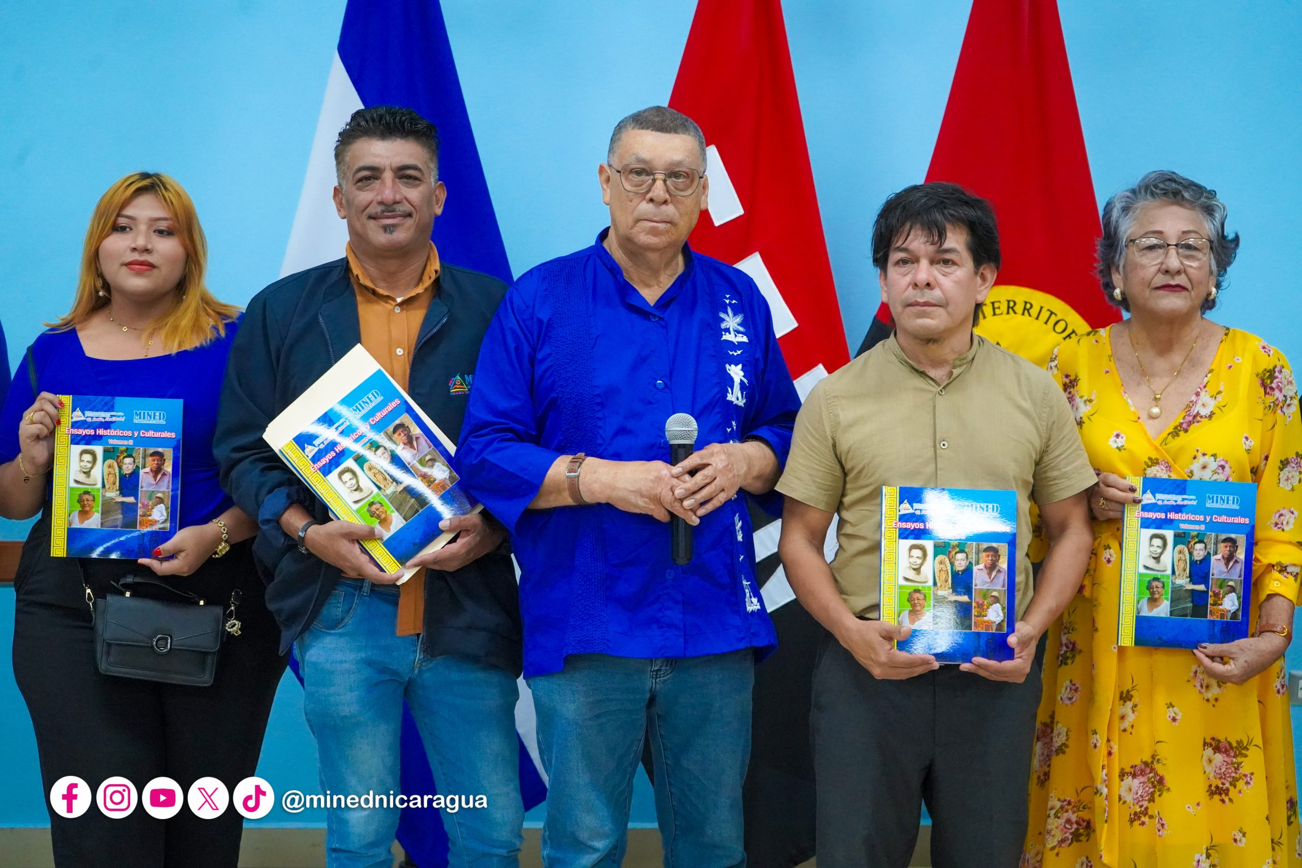 En el Auditorio Elena Arellano del MINED, se reunieron el compañero López, la Ministra de Educación, Mendy Arauz, protagonistas del libro y servidores públicos, para conocer los detalles de esta importante obra.