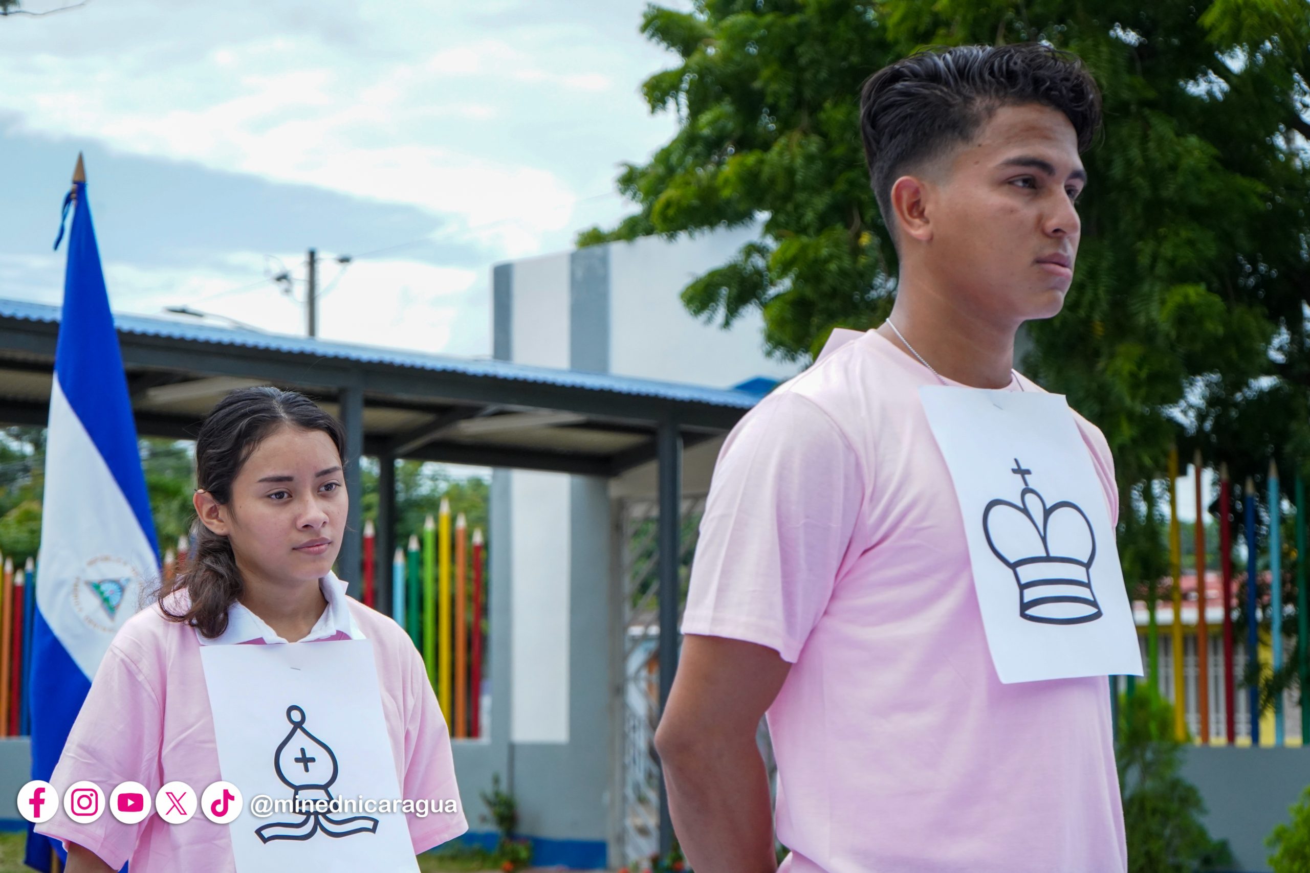Estudiantes y maestros, se posicionaron en un gigante tablero de ajedrez, representando cada pieza estratégica: rey, reina, torre, alfil, caballo y peón; listos para dar inicio a un emocionante torneo de ajedrez humano.
